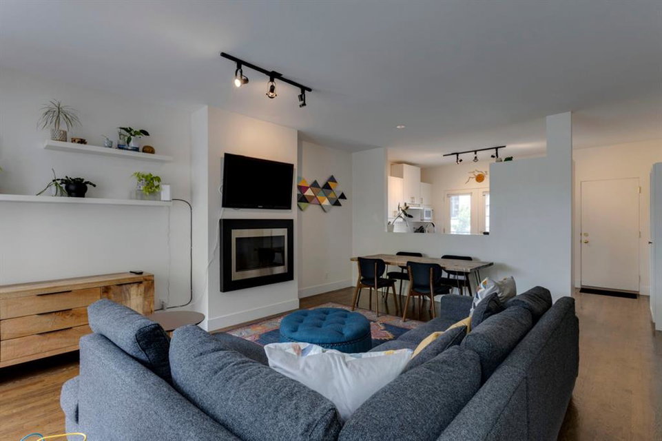 Designed by Sturgess Architecture, Connaught Gardens is an iconic building in the city of Calgary & is listed on the Alberta Association of Architects’ Chronicle of Significant Alberta Architecture. The complex consists of just eleven exclusive townhomes & is built around a central courtyard that offers abundant greenery. 1050 is the one of the largest units & resides on the sunny South side of the complex; it is one of the few that enjoys the extra sq ft afforded by a fully finished walkout lower level (total of 1757 developed sq ft). The main floor offers an open concept living space that is flooded w/ natural light via massive 2 story South facing windows; gleaming hardwood floors & gas fireplace adds warmth to the expansive living area. The open concept plan is great for entertaining. The kitchen is spacious & functional & enjoys direct access to the courtyard with patio area for BBQ. Two pc bath completes the main. Upper hosts two large bedrooms; cool loft space overlooks the front foyer & is perfect for home office. The main bath has been renovated with deep soaker tub, stand up shower, & sound. Enjoy the convenience of upper level laundry. Walkout lower level level enjoys its own entry & is bright & airy with large rec/media area, third bedroom & full bath. A single garage keeps your vehicle warm & offers extra storage space; additional parking for second vehicle located directly outside of garage. The Beltline is highly coveted by those that appreciate close proximity to the cities best restaurants, two major supermarkets (plus a handful of artisan markets & specialty grocers), inviting green spaces & play areas; the community offers a high level of walkability & a myriad of transit options that make owning a vehicle a choice, not a necessity. A stunning unit in an iconic complex in one of the cities most vibrant communities. Call for more information!