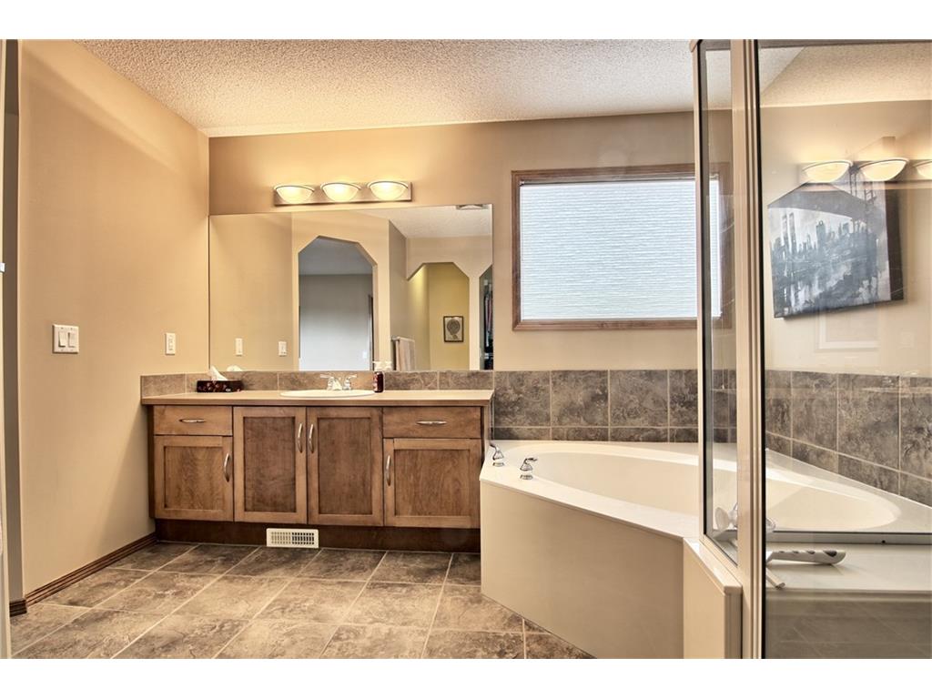 Perfect for the young & growing family is this lovely two storey in the popular neighbourhood of Tuscany…a sun-drenched 3 bedroom home built by Cardel. Only a short walk to bus stops & a playground, this wonderful property boasts open great room plan, hardwood floors & fenced backyard with large Duradek. Fantastic great room with corner gas fireplace, large dining nook with sliding doors to the deck & cognac-stained maple kitchen with black appliances, walk-in pantry & island. Upstairs there are 3 bedrooms & 2 full baths – including the spacious master bedroom with walk-in closet & soaker tub ensuite with separate shower & tile floors. Tucked away above the garage is a super bonus room with South-facing windows – the ideal space for the kids play area or media room for the family. There’s also a convenient main floor laundry, built-in speakers, lots of storage space plus the unspoiled lower level has roughed-in plumbing & oversized windows…great space for future living.