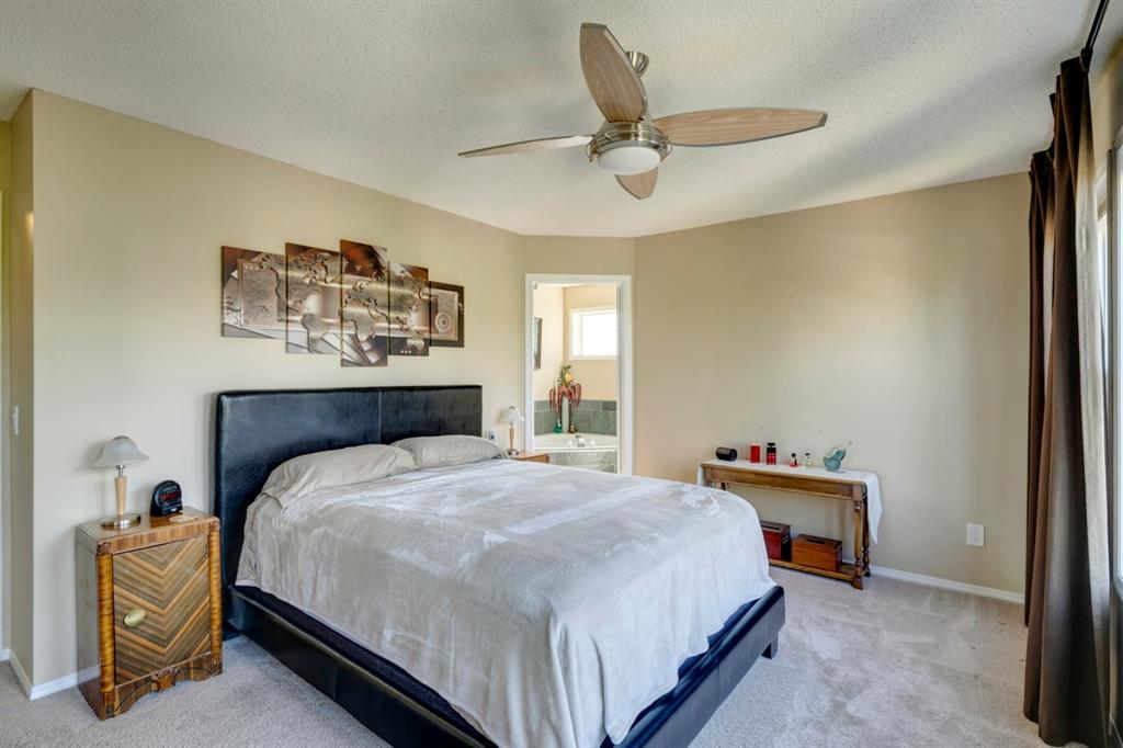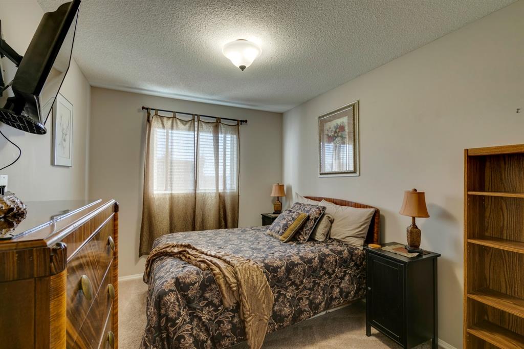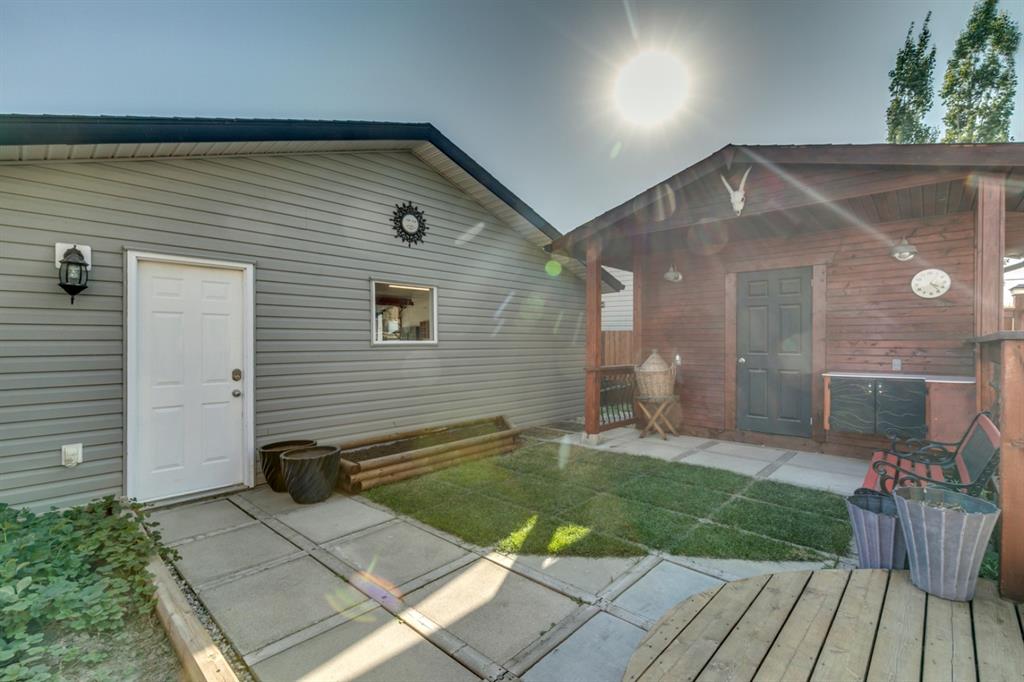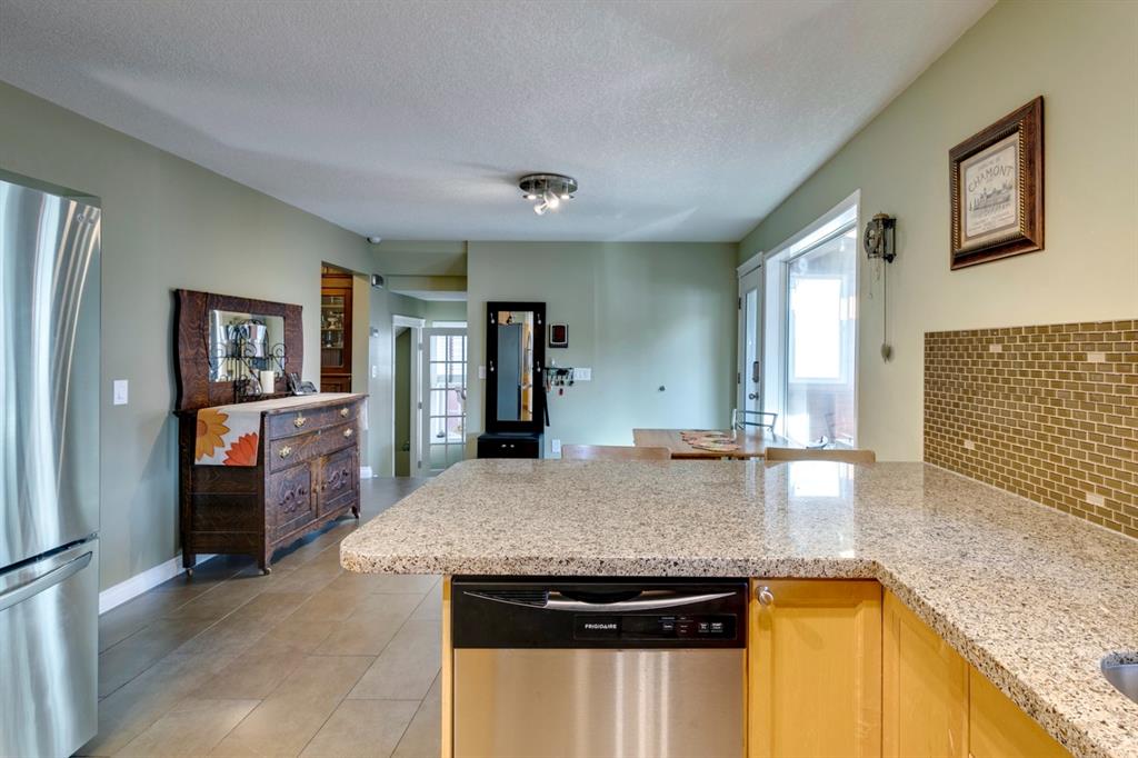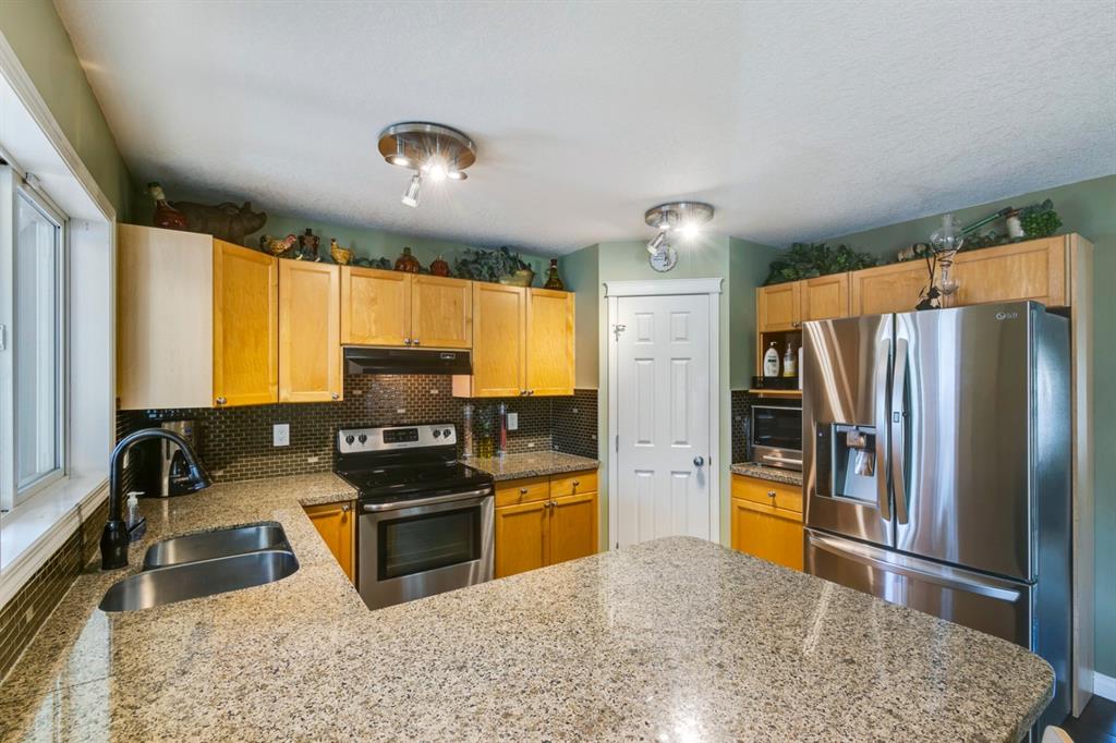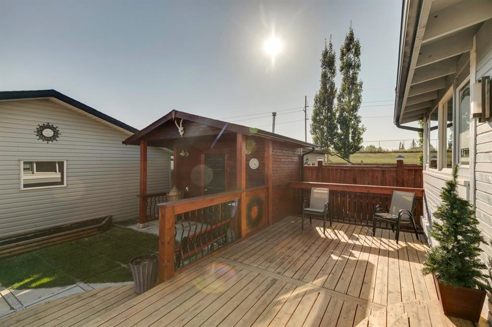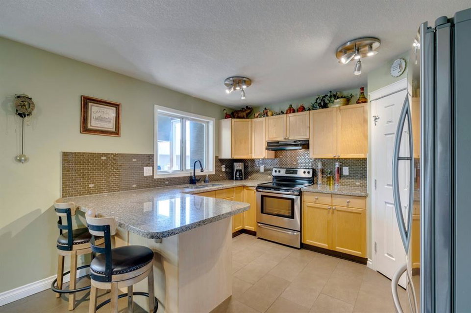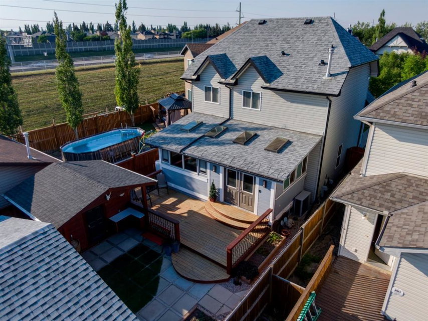 This remarkably unique home located on a quiet cul-de-sac is not to be missed! The well thought out floor plan and special touches throughout may make this the home you have been searching for! Special features are abundant including: easily maintained engineered sculptured hardwood flooring, A/C, spacious kitchen with new dishwasher, granite countertops, glass tile backsplash, plenty of cupboard space and convenient pantry. Additional space has been added via the extended patio to be utilized 12 months a year if so desired! A lovely cozy living room with beautiful stainless steel tile fireplace. Several windows throughout allowing natural sunlight to flow throughout the home. The master includes a sought-after walk-in closet, full width windows, luxury 4pc ensuite with a soaker tub. Unwind in the lower level theatre room! The fully finished permitted basement also includes the 4th bedroom currently being utilized as a home office, laundry room and additional storage space. The SOUTH facing low maintenance yard has a HEATED deck and an adorable shed complete with an outdoor kitchen. Men looking for a “man cave” will love the oversized, heated double garage including several storage cupboards. The popular community of McKenzie Towne allows you to be within minutes to parks, schools and an array of amenities. Do not miss this outstanding opportunity!