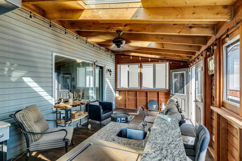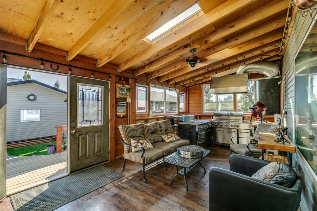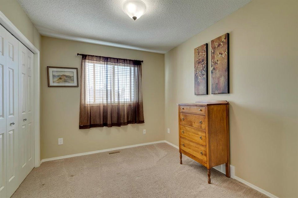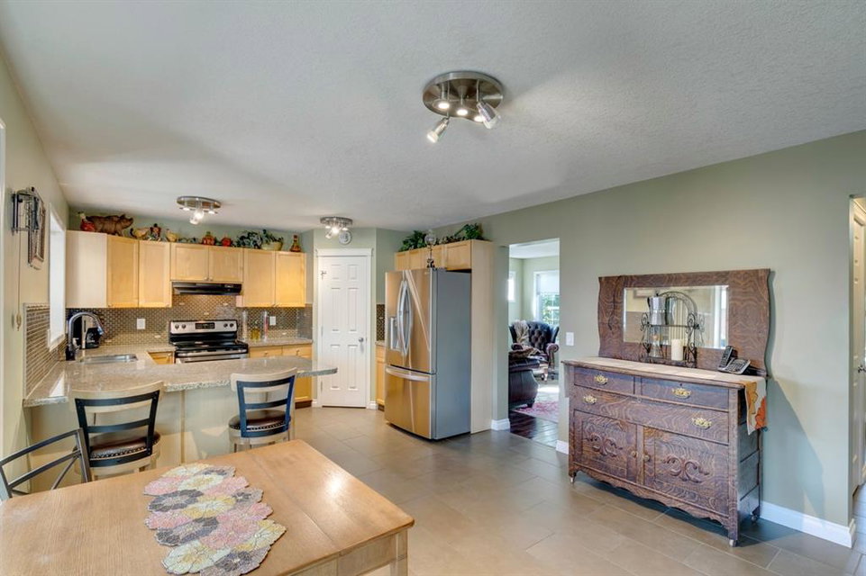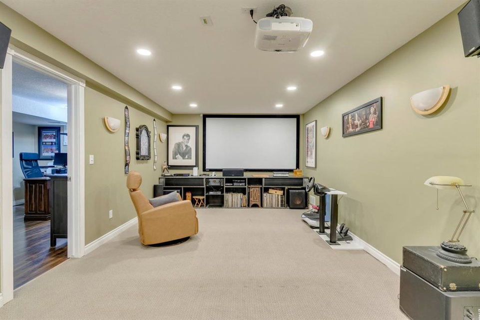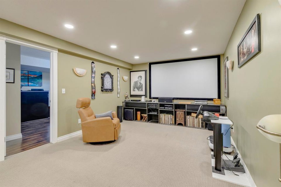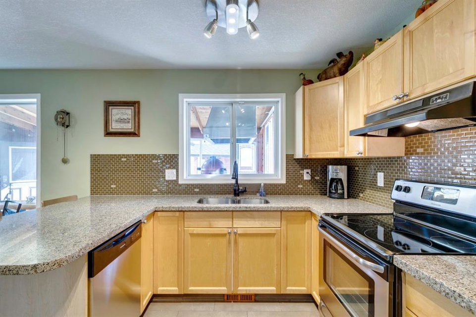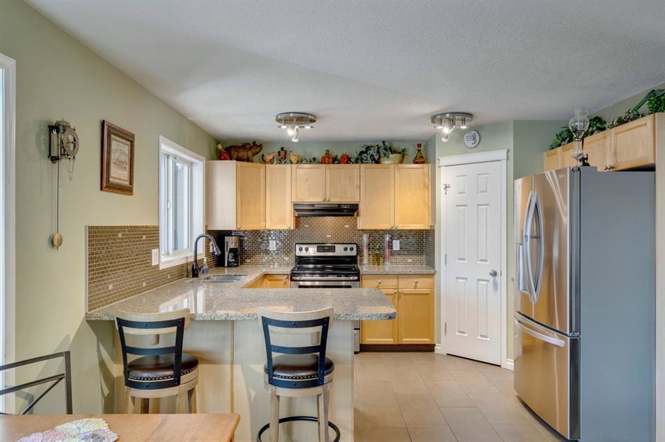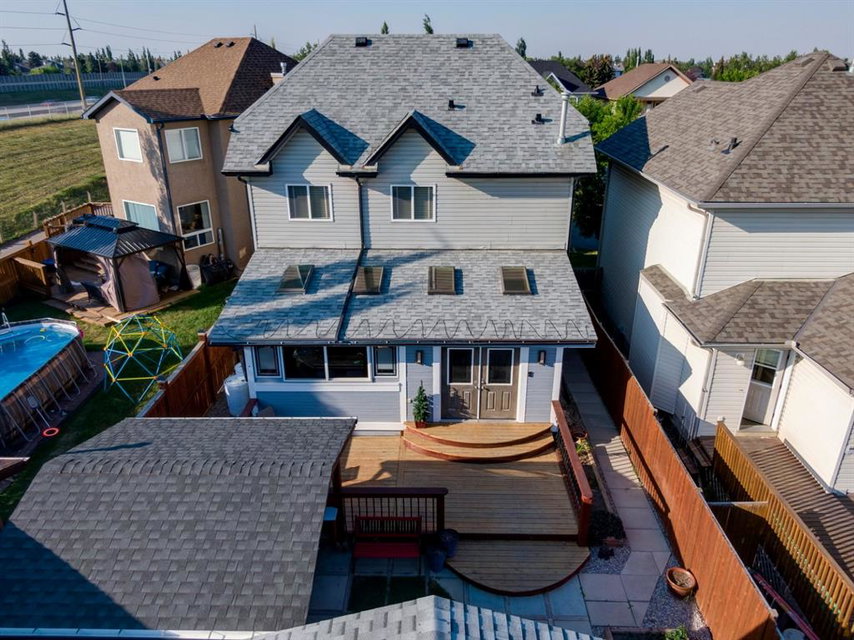 This remarkably unique home located on a quiet cul-de-sac is not to be missed! The well thought out floor plan and special touches throughout may make this the home you have been searching for! Special features are abundant including: easily maintained engineered sculptured hardwood flooring, A/C, spacious kitchen with new dishwasher, granite countertops, glass tile backsplash, plenty of cupboard space and convenient pantry. Additional space has been added via the extended patio to be utilized 12 months a year if so desired! A lovely cozy living room with beautiful stainless steel tile fireplace. Several windows throughout allowing natural sunlight to flow throughout the home. The master includes a sought-after walk-in closet, full width windows, luxury 4pc ensuite with a soaker tub. Unwind in the lower level theatre room! The fully finished permitted basement also includes the 4th bedroom currently being utilized as a home office, laundry room and additional storage space. The SOUTH facing low maintenance yard has a HEATED deck and an adorable shed complete with an outdoor kitchen. Men looking for a “man cave” will love the oversized, heated double garage including several storage cupboards. The popular community of McKenzie Towne allows you to be within minutes to parks, schools and an array of amenities. Do not miss this outstanding opportunity!