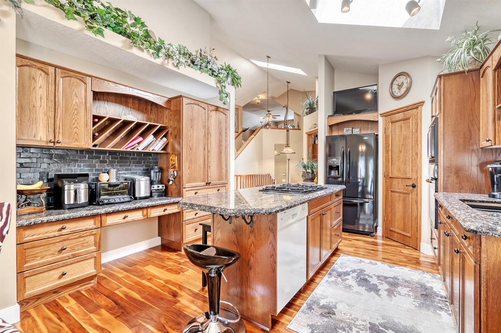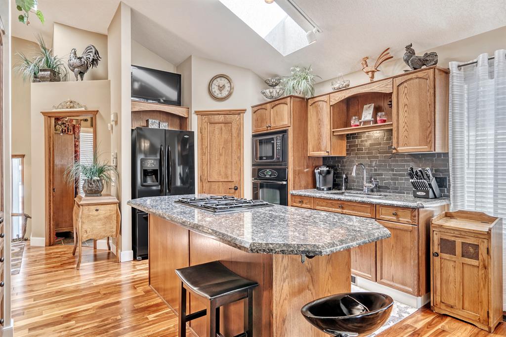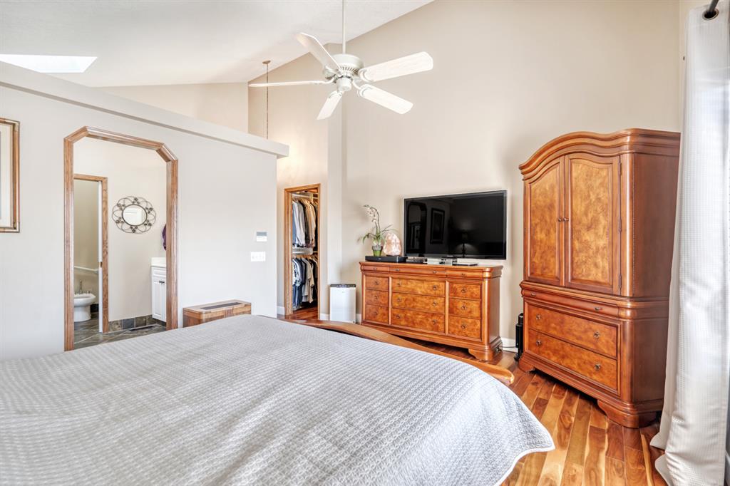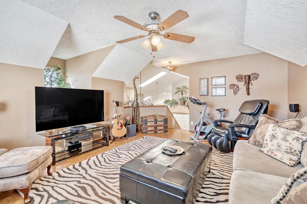 Amazing opportunity for this bungalow + loft floor plan in Lake Bonavista! At 1852 above grade and 3187 of total square footage, you’ll be hard pressed to find a bungalow of this size in this price category in Lake Bonavista. Drive up and you’ll be impressed with the curb appeal that this home offers – likely the most impressive along this stretch of bungalows on this street. This floor plan offers you with loads of utility and is smartly designed. The rooms are open & breezy, but offer defined principal spaces & privacy from the rest of the house. You’ll love the vaulted ceilings & skylights which provide a grand feel which is hard to find in Lake Bonavista. The kitchen features a large kitchen island and flows naturally into the spacious dining & living area featuring a gas fireplace. The 2 main level bedrooms are separated from the main living space and offer a quiet, private retreat. Huge 5 piece ensuite also has a good sized walk in closet. There is also a flex room on the main floor which is well suited for a home office, but can also function as a formal dining space or 3rd main level bedroom. The true distinguishing feature that you just don’t see in a bungalow in Lake Bonavista is the huge upper loft space that really adds a lot of useful space to this floor plan. Use this space as a second living area, gym or additional home office. What’s really nice is that a couple can really spread out on the main level and use their own space. Fully developed basement offers 3 additional bedrooms, full bathroom, huge recreation area & great storage. The home is fully air conditioned. West facing backyard gets loads of sun. The patio space has an awning to keep you shaded and cool in the summer. Underground sprinklers for easy lawn maintenance. Close to amenities like Fish Creek Park, the C-Train, Avenida Shops & the lake. What a great opportunity for a seldom found floor plan in Calgary’s premier lake community, Lake Bonavista.