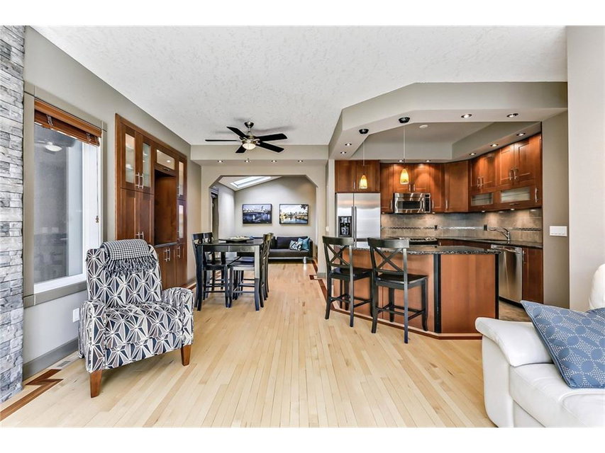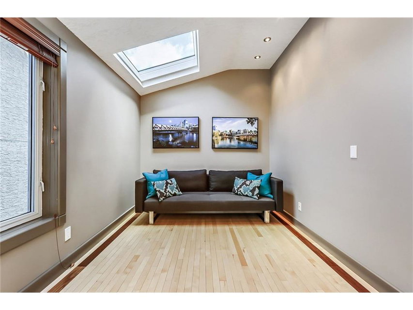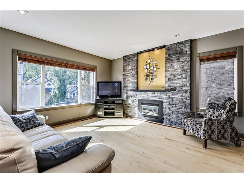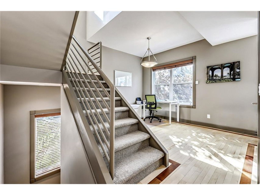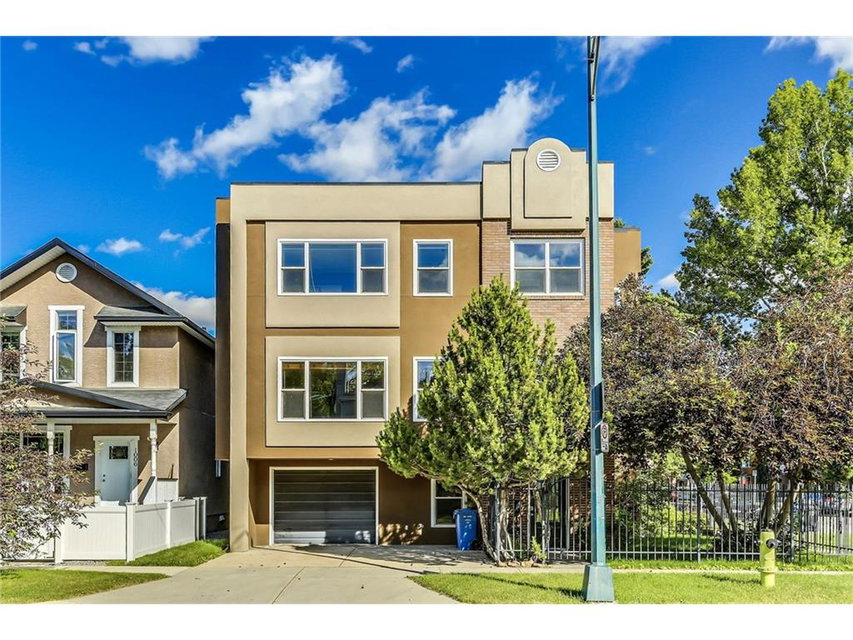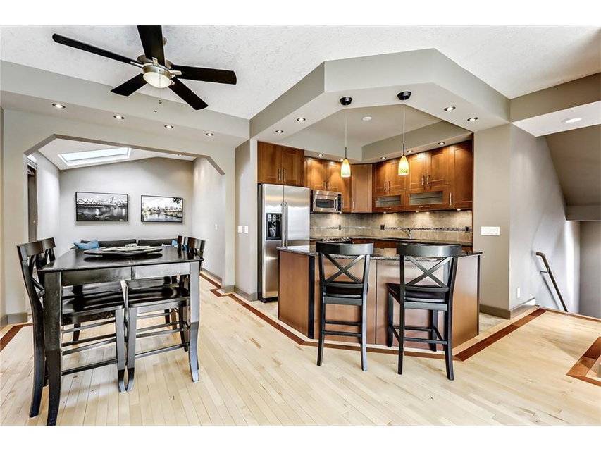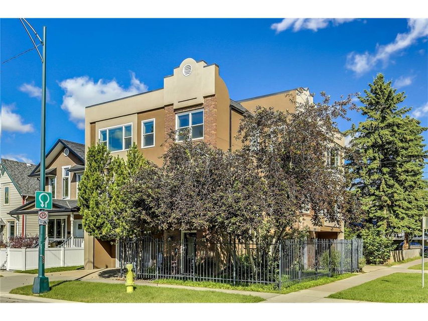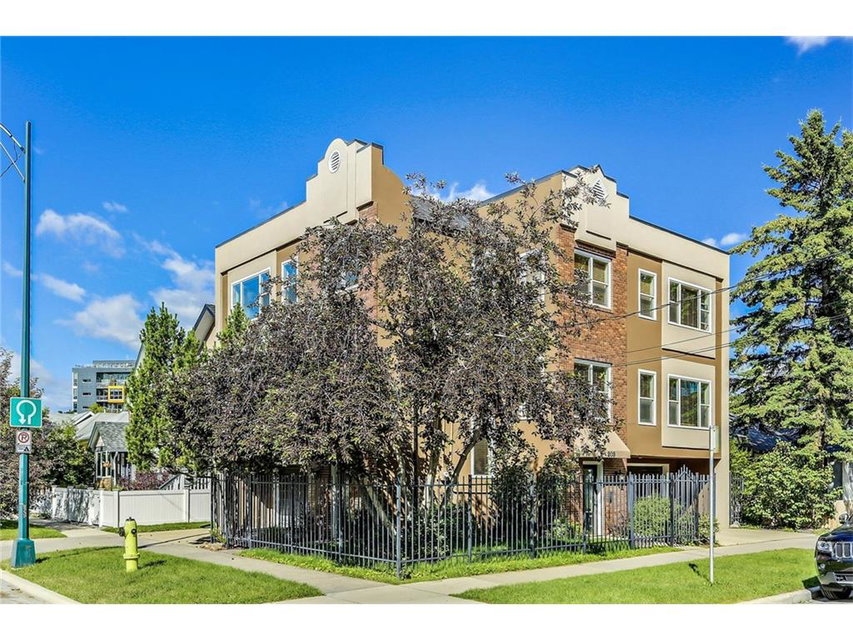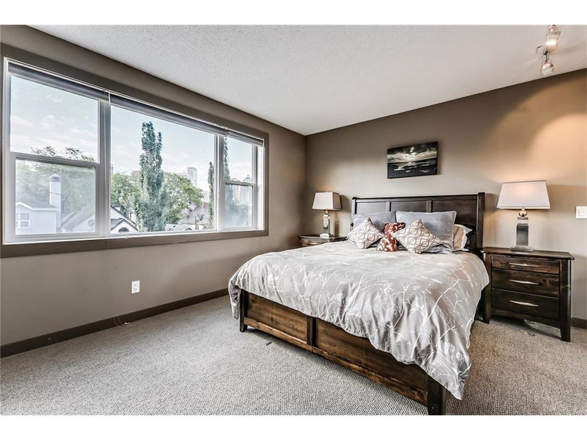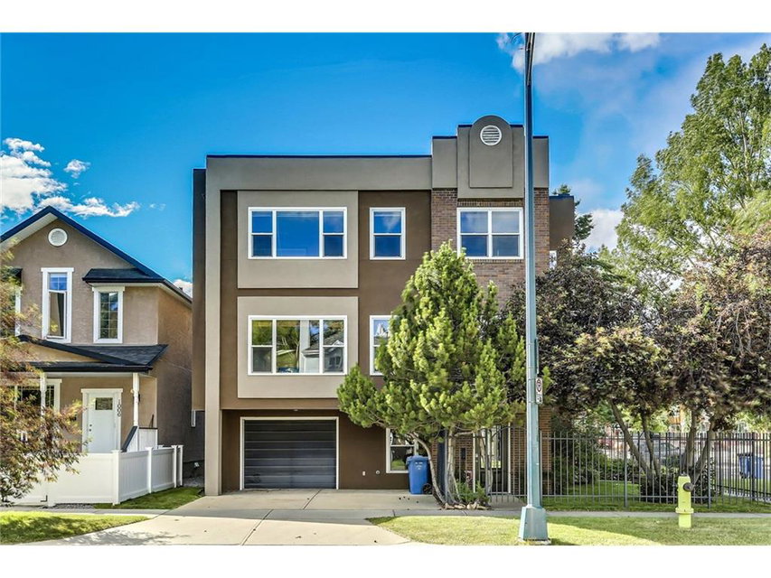 A rare find in the highly desirable community of Sunnyside. This 3 storey property with a garage is inner city living at its finest-Fantastic views from all levels located on a quiet street! You will love entertaining in this well thought out open concept floor plan with plenty of natural sunlight from your South facing windows. Special features are numerous: renovated kitchen w/ convenient eating bar (lots of counter and cupboard space), cozy fireplace, skylight, built in wall units, upper level laundry, spacious master bedroom with a ensuite (enjoy soaking in your jetted tub w/ stunning views). Yard includes a BBQ area & plenty of room for all your toys in the garage plus storage. Ability to control low condo fees due to self management of complex (fees include lawn care & snow removal). Windows, doors, stucco & roof have all been recently replaced . Minutes to the river paths, walk to downtown ,Safeways, Starbucks, pharmacy trendy Kensington restaurants shops and bars and Eau Claire market.