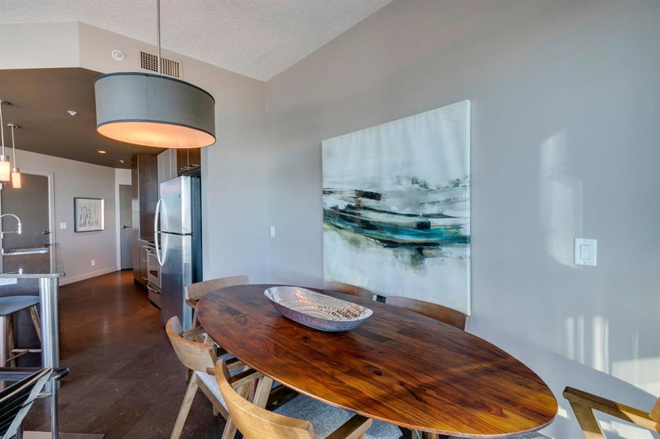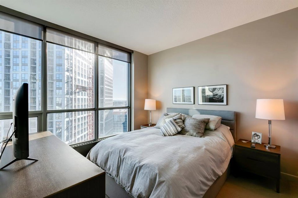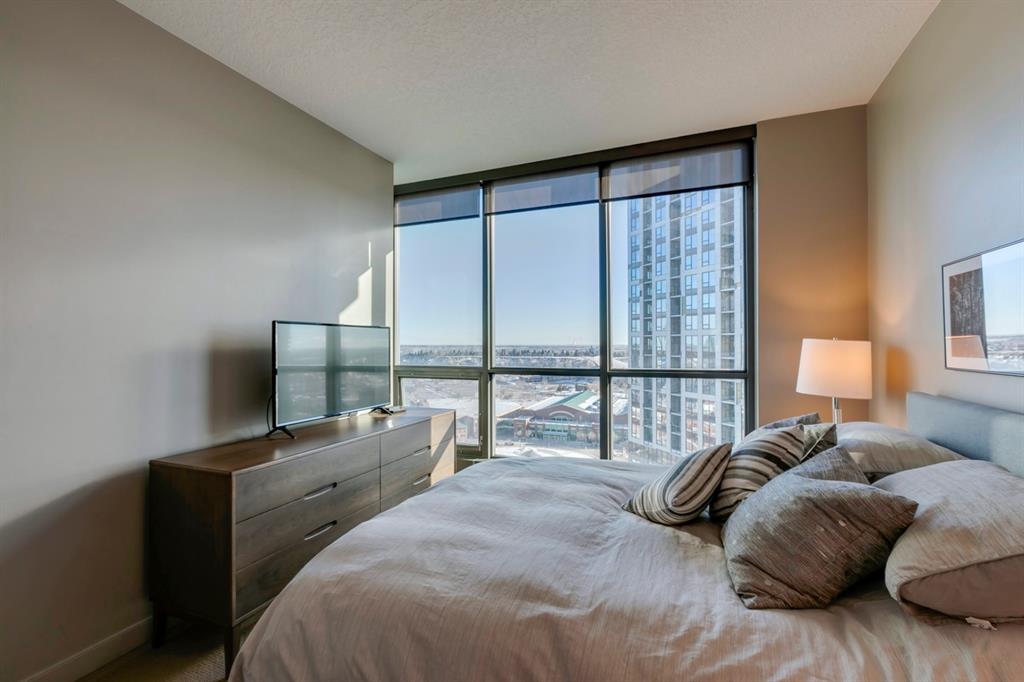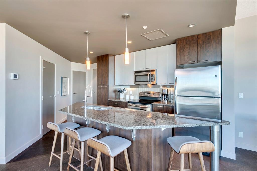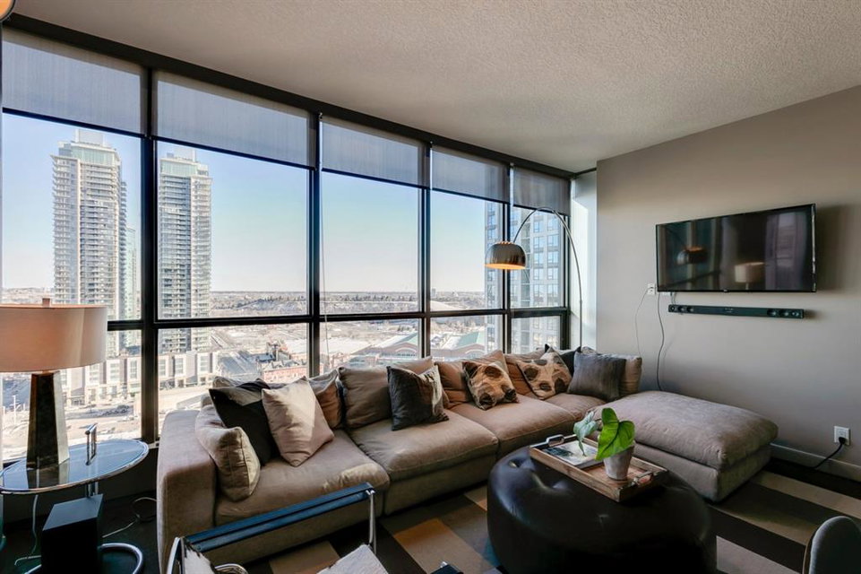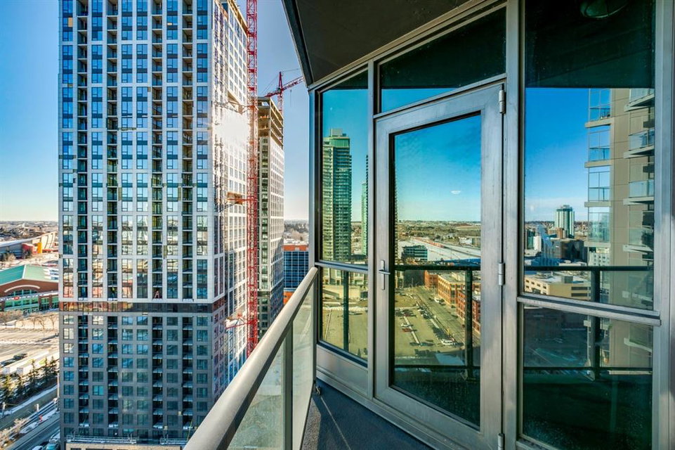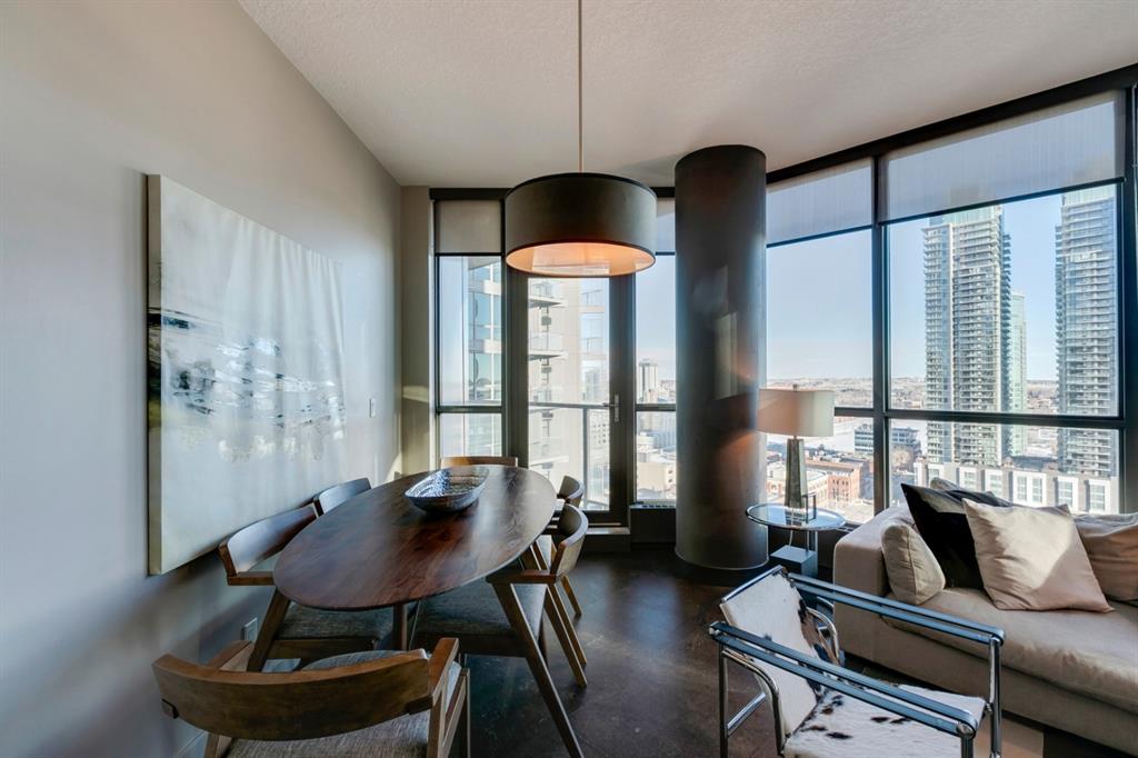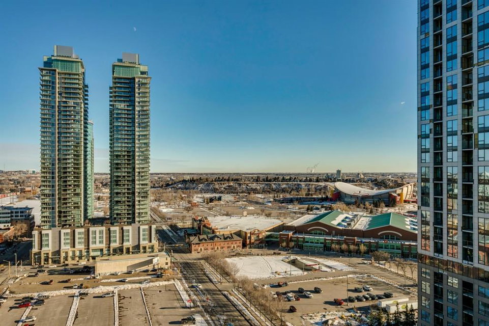 Inner city living at its finest! Live in a corner unit on the 20th floor with stunning views, 2 bedrooms and enjoy all that the Urban Village lifestyle has to offer. The open concept floor plan is perfect for entertaining and combines contemporary design & strong angular lines, while creating functional living space. Special features are numerous including: Lovely dyed cork flooring, floor to ceiling windows allowing plenty of sunshine and stunning views, granite countertops, and spacious breakfast island, stainless steel appliances, in-suite laundry, titled underground parking, master with a large walk-in closet which leads to your 4pc ensuite. The 2nd bedroom (room for a queen size bed) is perfect for guests or your home office. The Keynote complex combines residential, office, and retail spaces into one fashionable development set on a single city block. On the 2nd level there are all the amenities you could ever wish for are right at your fingertips: Incredible fitness centre, guest suite, sky park, owner’s lounge, and hot tub. The main level you’ll find: Sunterra Market, Starbucks, banking, MarketBar restaurant and5 Vines wine. Well located in the beltline minutes to the Saddledome, 1 block from downtown’s +15 system, East Village and the River. Do not miss this outstanding opportunity!