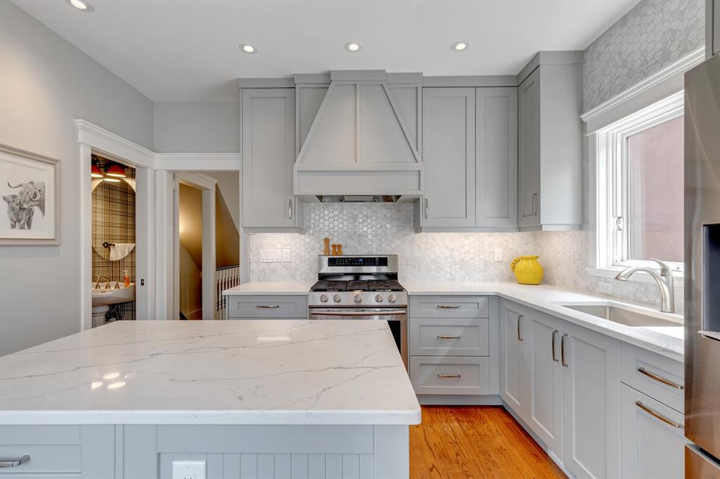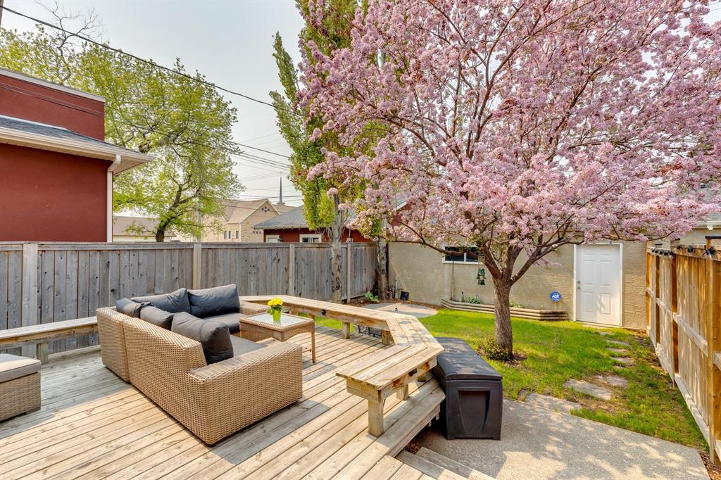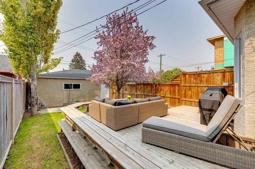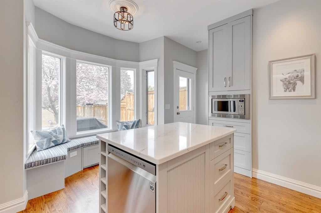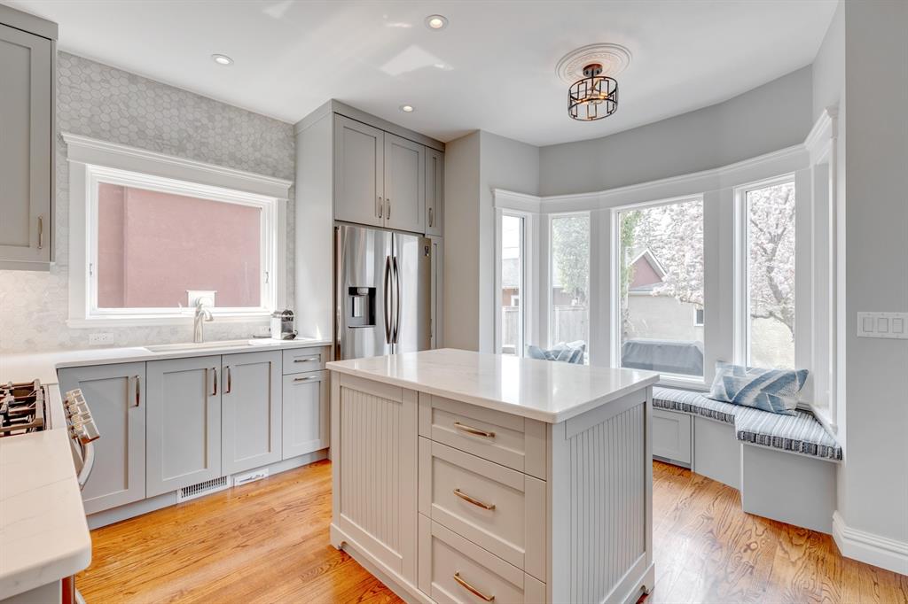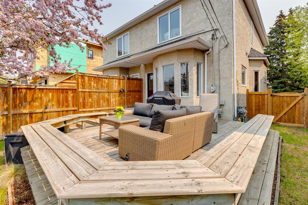 OPEN HOUSE MONDAY 22nd 2-4pm. Welcome to this charming Georgian Bay semi-detached home located in the desirable inner-city community of Killarney. This home has undergone a designer renovation, featuring several updates and customizations that add to its appeal. As you enter, you’ll notice the beautifully renovated custom kitchen, complete with quartz countertops, soft-close drawers, pot lights, and an island with storage. The kitchen also boasts a custom hood fan, stainless steel appliances, and a gas stove. Additionally, there’s a cozy window seat with a sunny view of the nicely landscaped west backyard, where you can place a small table if desired. A microwave station with storage is also included in the kitchen. The main floor has been freshly painted throughout, and a new front door adds to the overall aesthetic. In the living room, you can enjoy the ambiance of the feature gas fireplace while overlooking the front yard. The formal dining room provides ample space to entertain guests comfortably. The lower level of the house features a recreation room with a gas fireplace and built-ins, creating a perfect place to relax or set up a home theater. The mechanical room includes a newer washer and dryer and offers additional storage space. Moving to the upper level, you’ll find two bedrooms. The spacious master bedroom includes a 4-piece cheater ensuite with a skylight. The second bedroom can serve as a perfect office space if desired. One of the highlights of this property is the west-facing deck, complete with a firepit, where you can enjoy the outdoors and entertain guests. The property also includes an oversized double garage with enough space for a workshop. Both the front and backyard have been nicely landscaped with wood chips and a lovely selection of plants. This home benefits from an excellent location within the community, with trendy shops, restaurants, Westbrook Mall, and the C-train station all within walking distance. Making it a great place to call home.