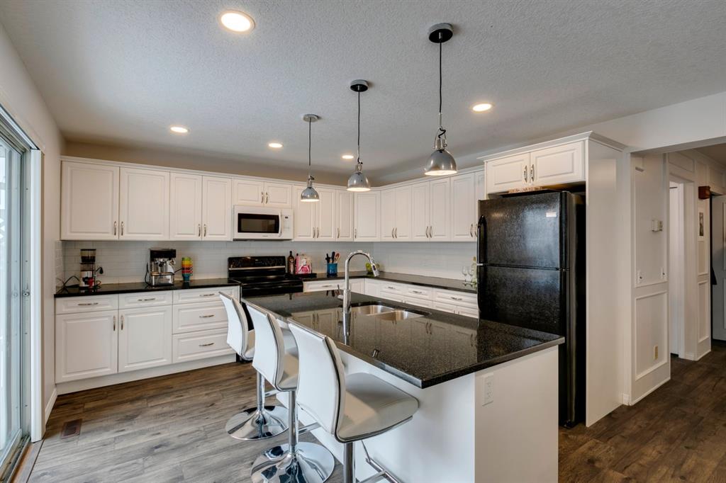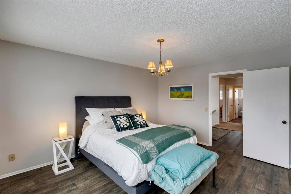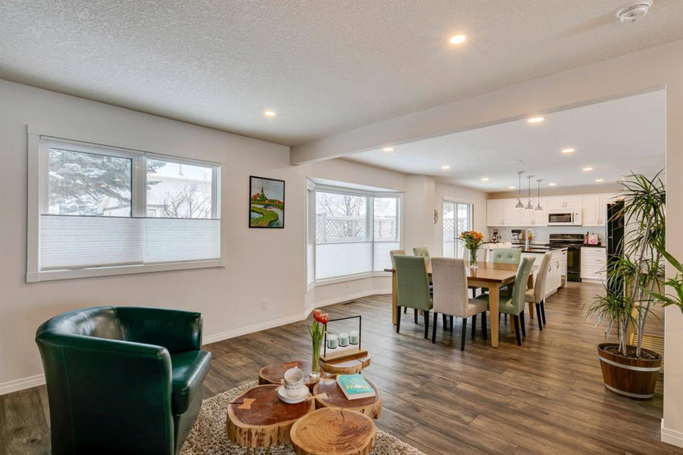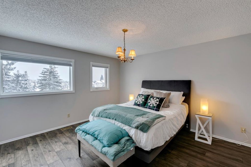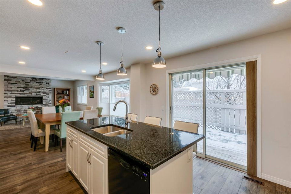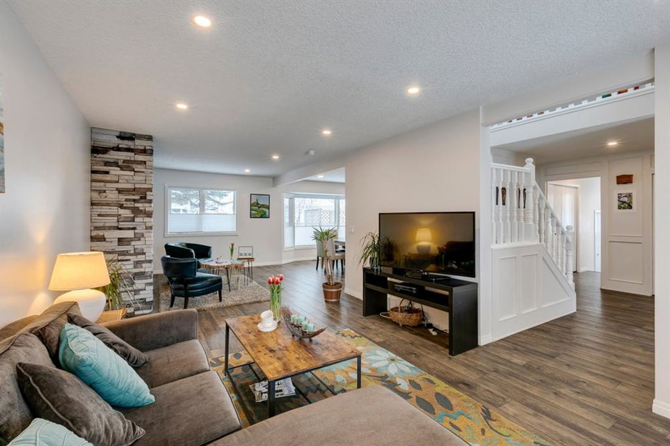 Your opportunity to live in the desirable NW community of Scenic Acres on a prime cul-de-sac location! Over $85k in updates have been completed and pride of ownership is evident. Special features are numerous including: Cathedral ceilings upon entering, well thought out open concept floor plan -the perfect area for entertaining, cozy gas fireplace with beautiful Rocky Mountain brick facing, renovated kitchen including an abundance of counter space, granite countertops, kitchen island, newer appliances and trendy white cabinetry. New pot lighting throughout the main floor, an abundance of large windows allowing plenty of natural sunlight (all new triple pane windows throughout the home with the exception of the sliding deck door and basement), brand new window coverings and black out blinds in the master, upgraded engineered hardwood flooring on the main and upper levels, FOUR bedrooms up with spacious master including a walk-in closet (with a window) and 3pc ensuite. Basement has plenty of storage and a huge recreation room to be utilized as you choose. The front porch enhances the curb appeal, and you will enjoy your private West facing yard with mature trees, deck with a convenient awning (perfect for those hot summer days), oversized double garage and back lane access to gated RV pad. Additional updates include: new plumbing throughout the home, garage door & the hot water tank. Well located – walk to schools, playgrounds, the LRT, bus stop, with easy access to both Crowchild & Stoney Trails and a short drive to Crowfoot Centre offering restaurants, retails, groceries and much more. Do not miss this outstanding opportunity!