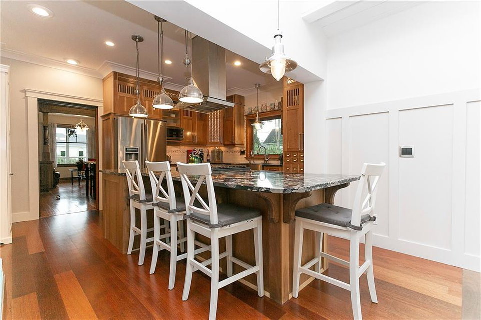 This stunning character home is located on a desirable corner lot & has been totally updated! You will appreciate the history & character of the home- it is warm & welcoming from the moment you step inside. Numerous special features in this immaculate & spacious home: LOVE your dream kitchen w/ granite, huge island, custom built cabinetry & deluxe appliances (the perfect area to entertain),cozy 3 way fireplace, newer Kolbe widows/furnace/James Hardy siding/shingles, gleaming original hardwood flooring,in-floor heat in family rm, freshly painted,private upper balcony off of master-perfect for morning coffee(dual staircases leading to upper level),West facing yard w/ an abundance of deck space(veranda around three sides of the house with 2/3 coverage),wrap around deck to enjoy sun or shade any time of day,large grassy landscaped yard for children to play & an oversized detached garage.A wonderful neighbourhood, quiet with great neighbours.Close proximity to schools, grocery store, arena & downtown.