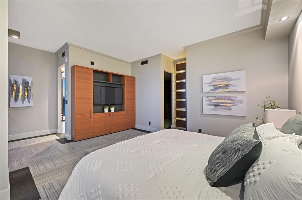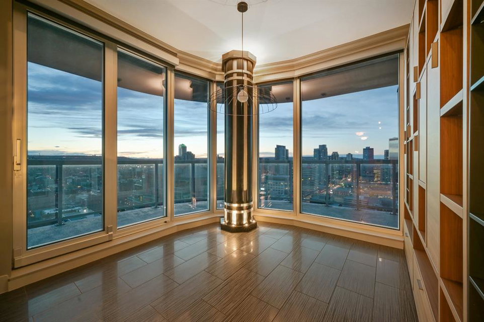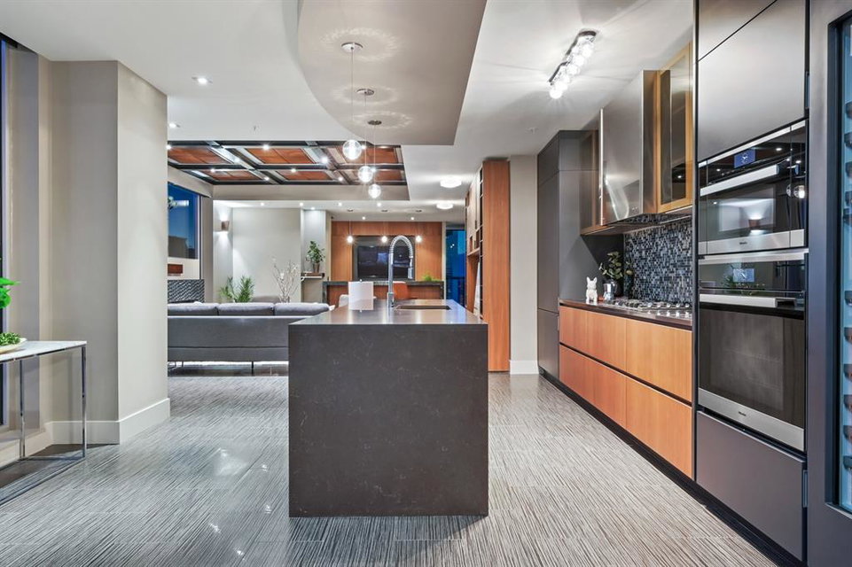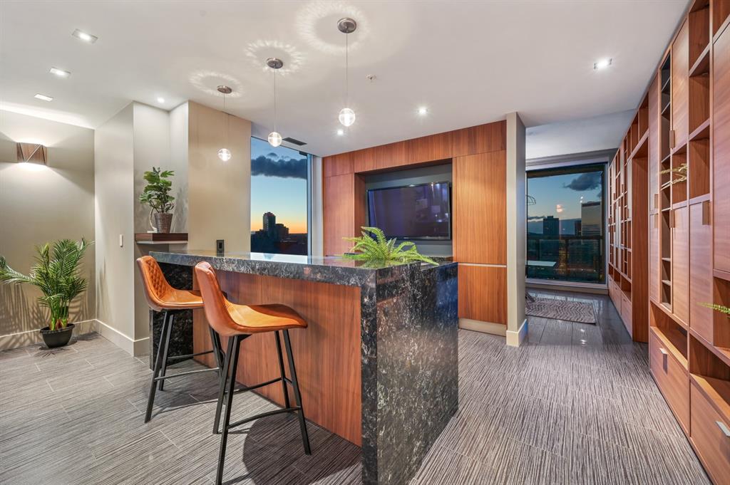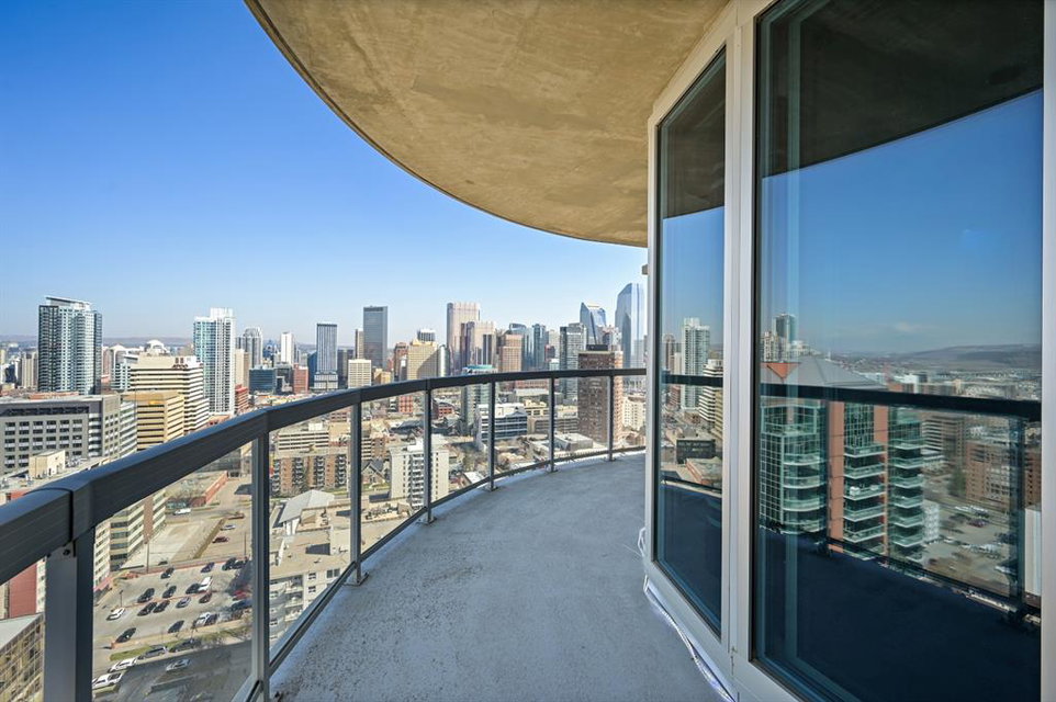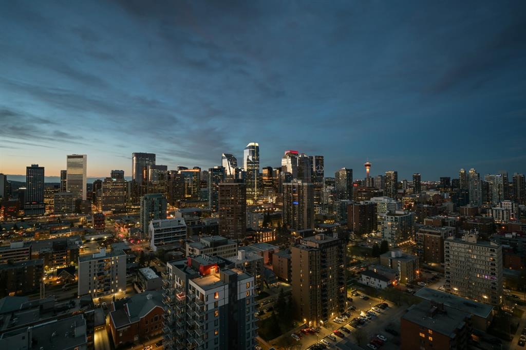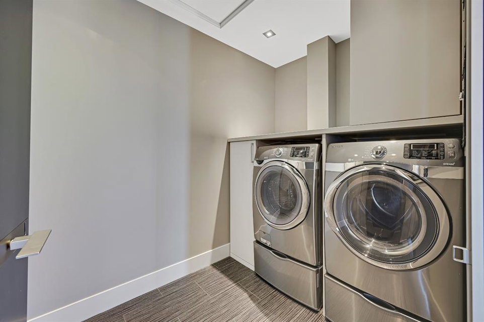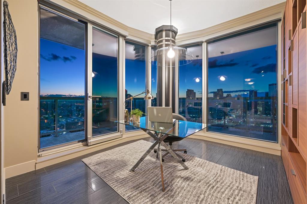 Welcome to The Montana, one of Calgary’s most desirable condominium buildings. This stunning penthouse is the ultimate in luxury living. Featuring FOUR balconies, each with their own breathtaking view, lets you take in both the downtown Calgary and the Rocky Mountain skyline from the comfort and elegance of your home. Located in the Beltline, conveniently off 17th Avenue, and steps to all of the trendy shops, restaurants, amenities, and nightlife you could hope for. This suite is truly one-of-a-kind. Fully renovated to taste with Italian marble flooring throughout the living, dinning, and kitchen areas. Upgraded custom Lualdi doors and custom Poliform cabinetry can be found throughout the suite, plus custom built-ins for all walk-in closets and the kitchen pantry. Floor to ceiling windows throughout the unit are automated with Lutron blinds in all rooms. The living room is the ultimate entertaining space with a custom dry bar, cozy gas fireplace and floor to ceiling windows facing the mountains. The meticulously upgraded kitchen boasts an in-wall oven, microwave, cooktop, dishwasher, and refrigerator/freezer all from Miele, and includes an oversized Gaggenau wine fridge. The expansive island provides plenty of countertop space for cooking and dining. The dining area offers great ambiance, breathtaking views of the mountains, plenty of space for formal or informal dinning, and access to the main balcony. The spacious primary bedroom has custom Poliform entertainment built-ins, paneled lighting, and a spacious custom walk-in closet. The luxurious ensuite is complimented with elegant Cavalli tiled flooring, dual granite vanity, soaker tub, tiled steam shower, and a towel warmer. The walk-in closet includes custom Poliform mirrored built ins. The primary oasis is finished with a peaceful seating area that opens to your stunning balcony. The office area includes access to the third balcony and delivers spectacular city and mountain views complimented by more custom cabinetry. Down the hallway you’ll find the second bedroom, a two-piece bathroom with a floating vanity including motion censored under sink lighting, and a large laundry room. The third bedroom includes an impressive custom entertainment system, wall shelving with custom lighting, a walk-in closet with custom built-ins, and a 4th balcony with dazzling views of the downtown core. The three-piece bathroom across the hall has a large benched tiled steam shower, granite floating vanity with under sink motion senor lighting, and a towel warmer. This property also includes two titled underground parking stalls each equipped with an EV charging unit; along with oversized private locked storage. Don’t miss out on this sophisticated home that has some of the best views Calgary has to offer.