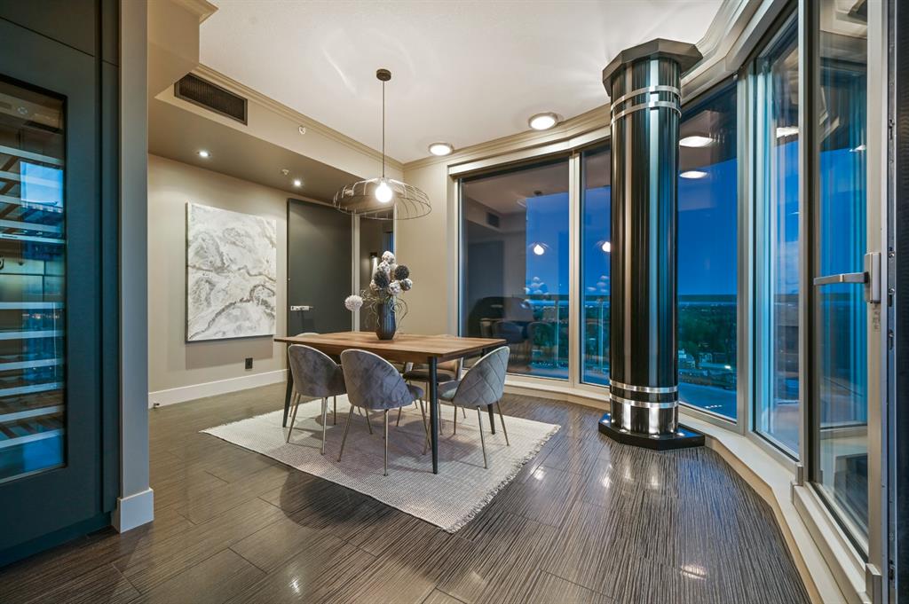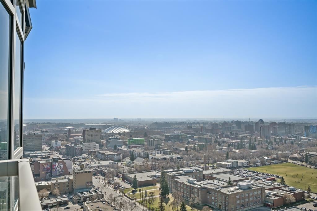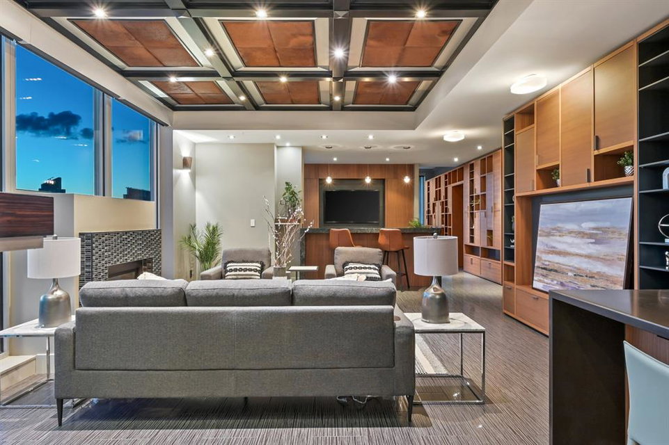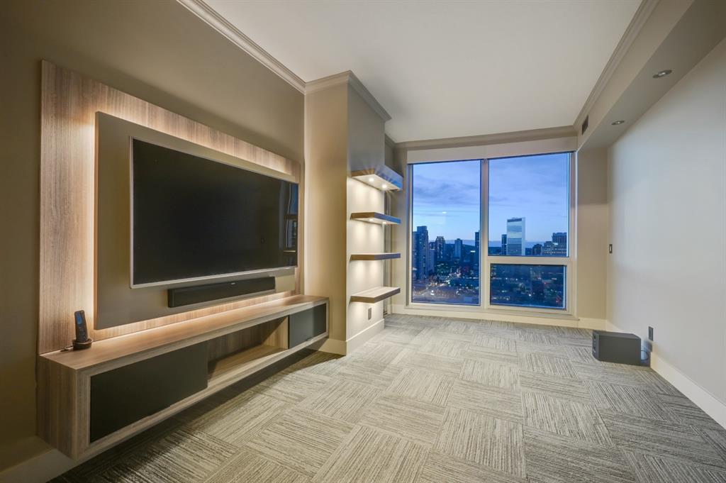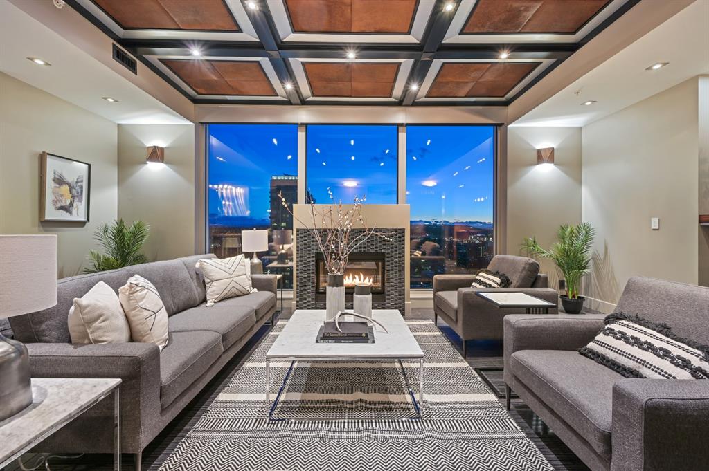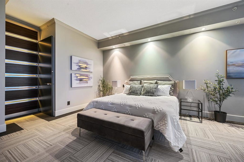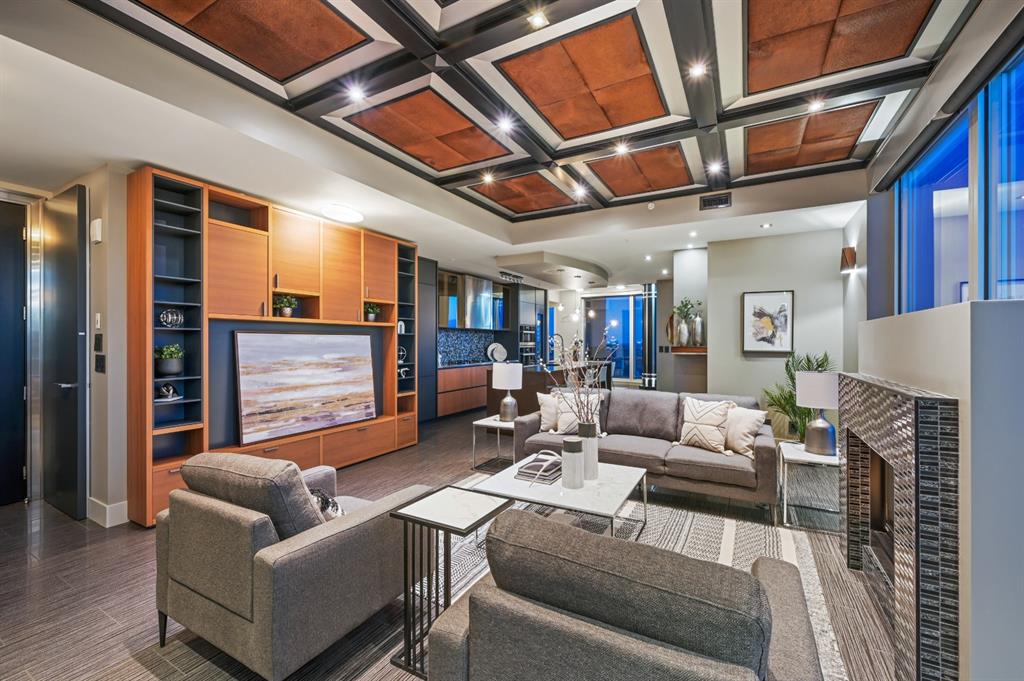 Welcome to The Montana, one of Calgary’s most desirable condominium buildings. This stunning penthouse is the ultimate in luxury living. Featuring FOUR balconies, each with their own breathtaking view, lets you take in both the downtown Calgary and the Rocky Mountain skyline from the comfort and elegance of your home. Located in the Beltline, conveniently off 17th Avenue, and steps to all of the trendy shops, restaurants, amenities, and nightlife you could hope for. This suite is truly one-of-a-kind. Fully renovated to taste with Italian marble flooring throughout the living, dinning, and kitchen areas. Upgraded custom Lualdi doors and custom Poliform cabinetry can be found throughout the suite, plus custom built-ins for all walk-in closets and the kitchen pantry. Floor to ceiling windows throughout the unit are automated with Lutron blinds in all rooms. The living room is the ultimate entertaining space with a custom dry bar, cozy gas fireplace and floor to ceiling windows facing the mountains. The meticulously upgraded kitchen boasts an in-wall oven, microwave, cooktop, dishwasher, and refrigerator/freezer all from Miele, and includes an oversized Gaggenau wine fridge. The expansive island provides plenty of countertop space for cooking and dining. The dining area offers great ambiance, breathtaking views of the mountains, plenty of space for formal or informal dinning, and access to the main balcony. The spacious primary bedroom has custom Poliform entertainment built-ins, paneled lighting, and a spacious custom walk-in closet. The luxurious ensuite is complimented with elegant Cavalli tiled flooring, dual granite vanity, soaker tub, tiled steam shower, and a towel warmer. The walk-in closet includes custom Poliform mirrored built ins. The primary oasis is finished with a peaceful seating area that opens to your stunning balcony. The office area includes access to the third balcony and delivers spectacular city and mountain views complimented by more custom cabinetry. Down the hallway you’ll find the second bedroom, a two-piece bathroom with a floating vanity including motion censored under sink lighting, and a large laundry room. The third bedroom includes an impressive custom entertainment system, wall shelving with custom lighting, a walk-in closet with custom built-ins, and a 4th balcony with dazzling views of the downtown core. The three-piece bathroom across the hall has a large benched tiled steam shower, granite floating vanity with under sink motion senor lighting, and a towel warmer. This property also includes two titled underground parking stalls each equipped with an EV charging unit; along with oversized private locked storage. Don’t miss out on this sophisticated home that has some of the best views Calgary has to offer.