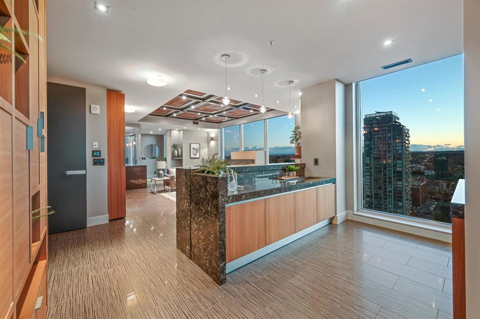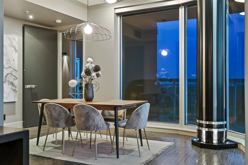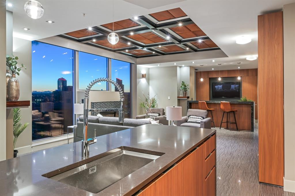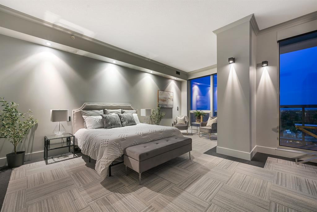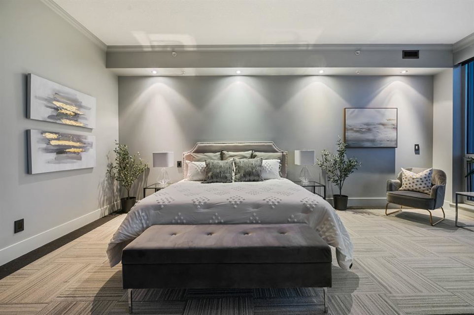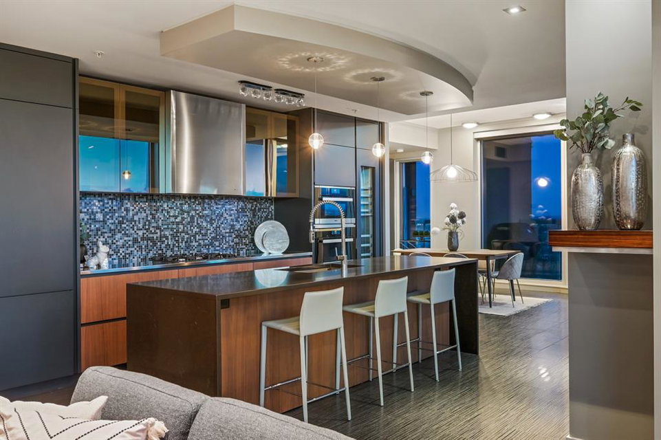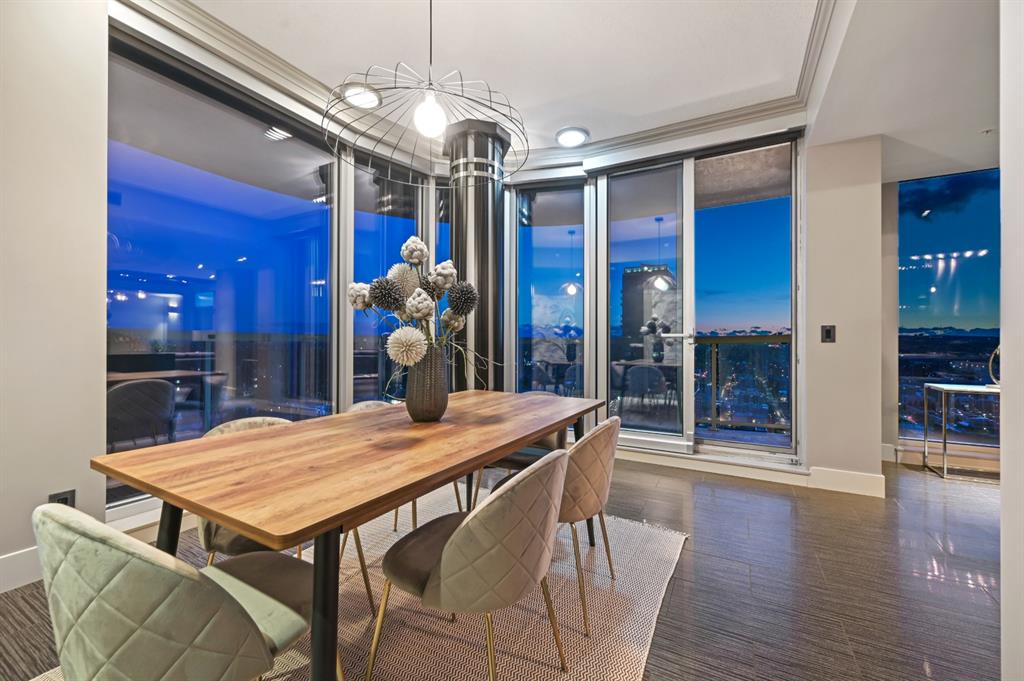 Welcome to The Montana, one of Calgary’s most desirable condominium buildings. This stunning penthouse is the ultimate in luxury living. Featuring FOUR balconies, each with their own breathtaking view, lets you take in both the downtown Calgary and the Rocky Mountain skyline from the comfort and elegance of your home. Located in the Beltline, conveniently off 17th Avenue, and steps to all of the trendy shops, restaurants, amenities, and nightlife you could hope for. This suite is truly one-of-a-kind. Fully renovated to taste with Italian marble flooring throughout the living, dinning, and kitchen areas. Upgraded custom Lualdi doors and custom Poliform cabinetry can be found throughout the suite, plus custom built-ins for all walk-in closets and the kitchen pantry. Floor to ceiling windows throughout the unit are automated with Lutron blinds in all rooms. The living room is the ultimate entertaining space with a custom dry bar, cozy gas fireplace and floor to ceiling windows facing the mountains. The meticulously upgraded kitchen boasts an in-wall oven, microwave, cooktop, dishwasher, and refrigerator/freezer all from Miele, and includes an oversized Gaggenau wine fridge. The expansive island provides plenty of countertop space for cooking and dining. The dining area offers great ambiance, breathtaking views of the mountains, plenty of space for formal or informal dinning, and access to the main balcony. The spacious primary bedroom has custom Poliform entertainment built-ins, paneled lighting, and a spacious custom walk-in closet. The luxurious ensuite is complimented with elegant Cavalli tiled flooring, dual granite vanity, soaker tub, tiled steam shower, and a towel warmer. The walk-in closet includes custom Poliform mirrored built ins. The primary oasis is finished with a peaceful seating area that opens to your stunning balcony. The office area includes access to the third balcony and delivers spectacular city and mountain views complimented by more custom cabinetry. Down the hallway you’ll find the second bedroom, a two-piece bathroom with a floating vanity including motion censored under sink lighting, and a large laundry room. The third bedroom includes an impressive custom entertainment system, wall shelving with custom lighting, a walk-in closet with custom built-ins, and a 4th balcony with dazzling views of the downtown core. The three-piece bathroom across the hall has a large benched tiled steam shower, granite floating vanity with under sink motion senor lighting, and a towel warmer. This property also includes two titled underground parking stalls each equipped with an EV charging unit; along with oversized private locked storage. Don’t miss out on this sophisticated home that has some of the best views Calgary has to offer.