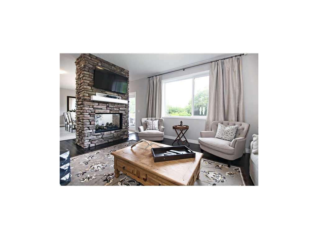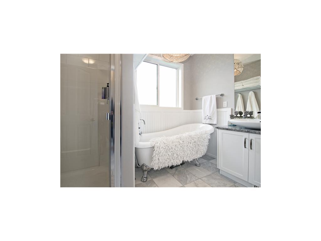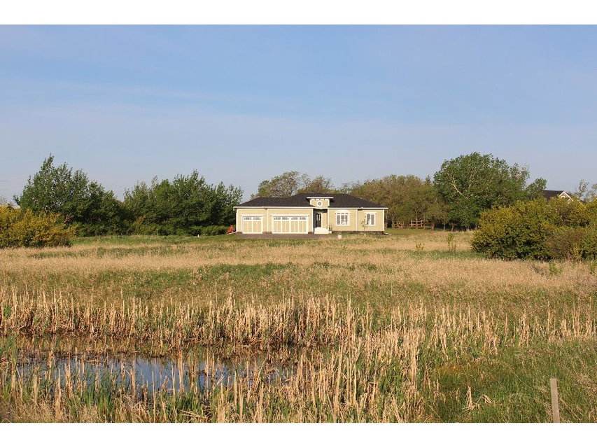 Spectacular treed 4 acres with gorgeous bungalow in a small estate subdivision just 7 minutes to QEII. This home is occupied by the builder. Priced under cost Basement fully developed by builder to the same high standards as main level. Rustic, stacked ledgestone 2 sided fireplace reaches floor to ceiling. Contemporary kitchen has stainless steel appliances, white cabinets, granite countertops.2 large pantries & a built in granite-topped buffet organize the nook. Marble, glass and chandeliers reflect from angled mirrors, showcasing clamshell vessels, waterfall faucets and granite coutertops in the bathrooms and a a clawfoot tub in the ensuite. The nook is organized by a built in, granite-topped buffet , its large window overlooks the west deck & tree lined yard. 3/4 acre area perfect for gardening. Lockers in mudroom, 9′ basement ceilings, 2 flat screen tv’s, espresso hardwood, wrought iron railing, laundry room has folding counter and lots of cabinetry. Oversized triple attached garage. Paved cul-de-sac.