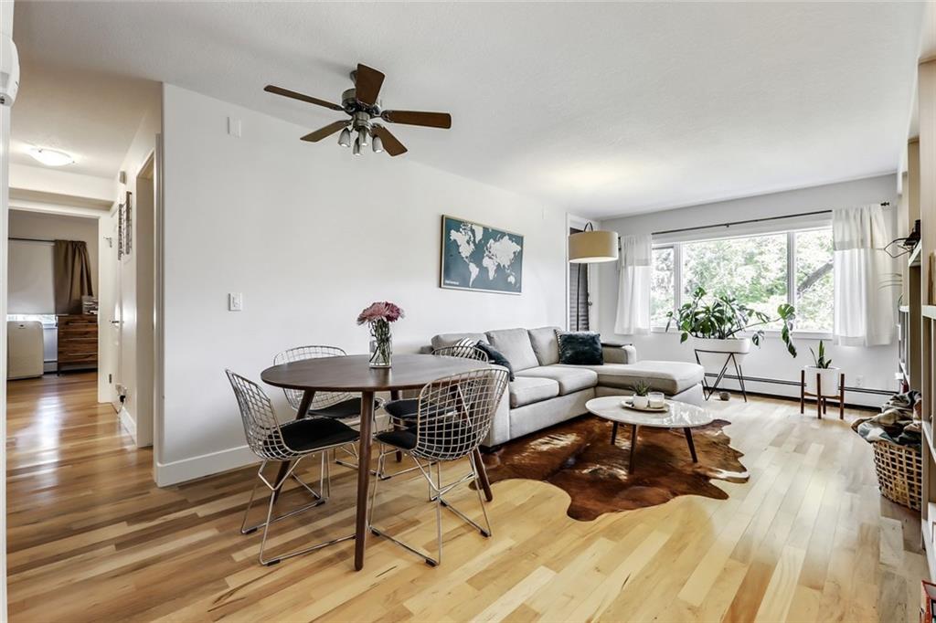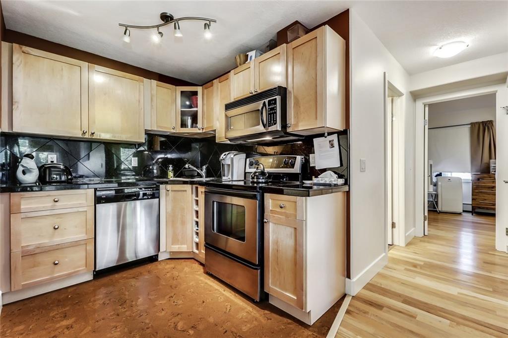 Top floor unit in a quiet concrete building in the sought after inner-city community of Sunnyside. Special features are numerous: granite counter tops, maple shaker cabinets, maple engineered hardwood flooring, stainless steel appliances, open concept & large windows allowing plenty of sunlight (a lovely space for entertaining), 2 spacious bedrooms, 4pc bathroom w/ separate shower & in suite laundry. The balcony is ideally located with a S/SE oriented balcony perfectly located (not too hot in the summer months yet sun comes streaming into the living room to warm things up on clear mornings in the winter). “Sol of Sunnyside” is located on a quiet street (“Hugh McBluff” green space is in the rear) close to countless amenities: Walk to the grocery store, schools, downtown, river, park & pathways, LRT, SAIT, Eau Claire market, Peace Bridge and numerous restaurants & shops in Kensington.
