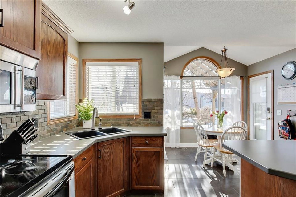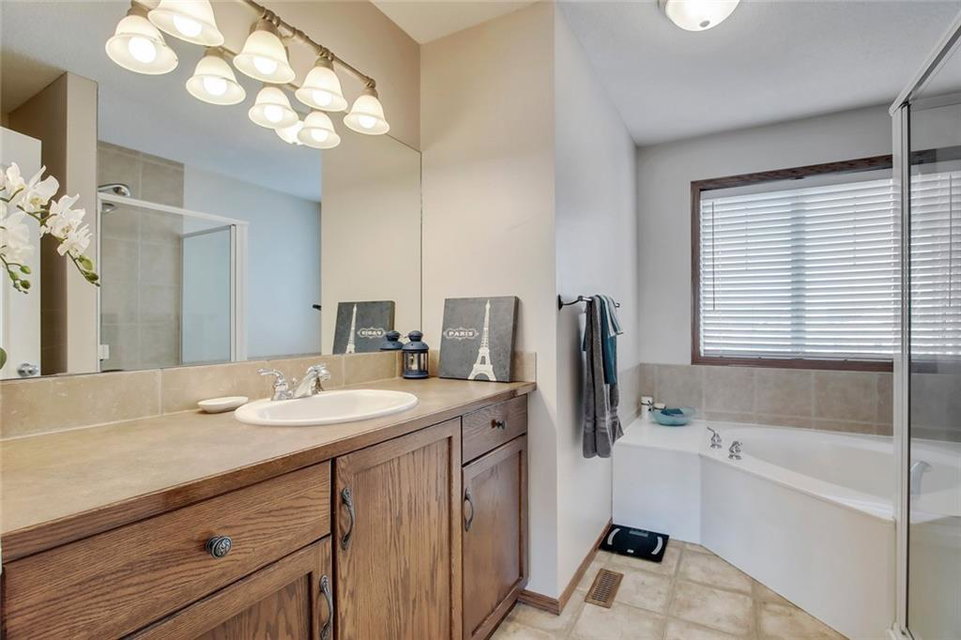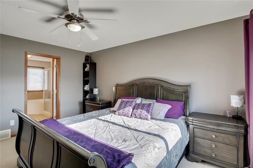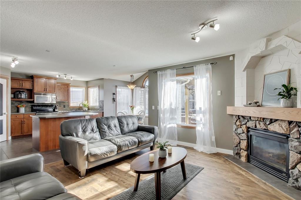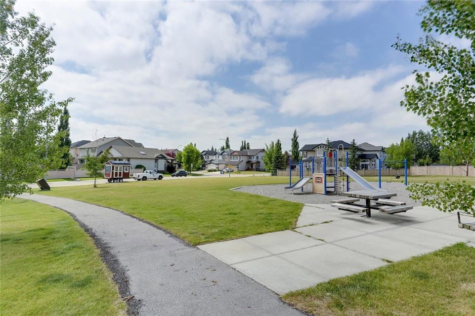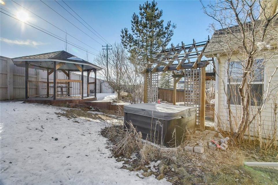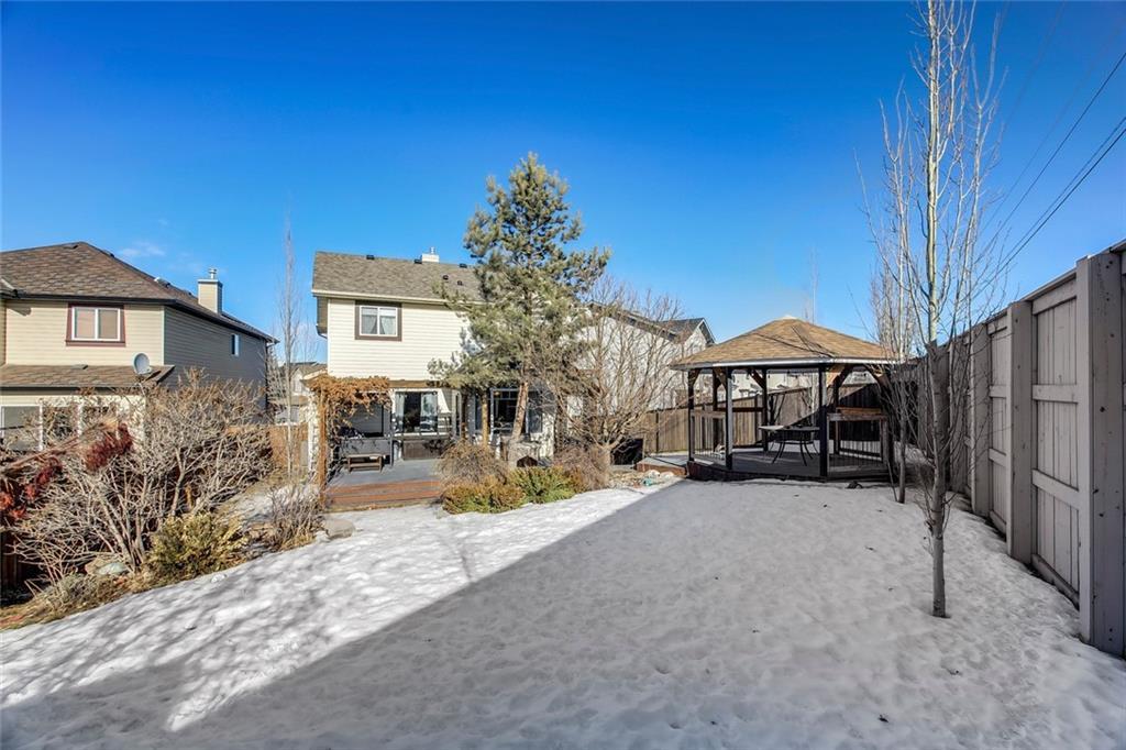The perfect family home located on a huge corner lot in the desirable community of Chaparral w/ Lake access on a quiet cul-de-sac! Special features are numerous: You’ll definitely appreciate the ROOF, FURNACE & HOT WATER TANK (all NEW in 2019) future repairs you won’t have to think about for a long time, AC, refinished hardwood flooring in your open concept living rm (perfect area for entertaining), unwind by your stone-faced fireplace, well laid out kitchen w/ breakfast bar & corner pantry, several windows allowing plenty of sunshine from your South facing yard (truly an oasis w/ a deck, gazebo, shed, pergola AND a hot tub), convenient main flr laundry & mudroom. Relax in your spacious upper level bonus rm OR in the basement retreat complete w/ movie screen & projector, concrete wet bar, bar fridge, extra storage & 4th bedroom. Upper level includes 3 bdrms- master w/ walk-in closet & 4pc ensuite (soaker tub & separate shower). Walking distance to school, parks or shopping!