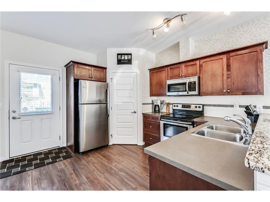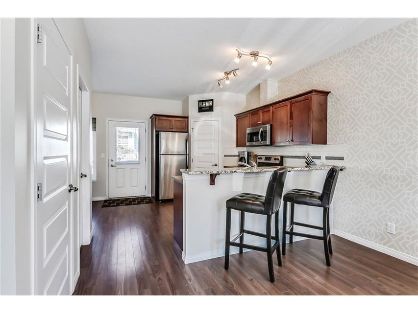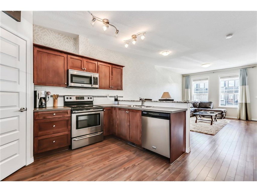 BONUS SELLER WILL PAY 6 MONTHS OF CONDO FEES.Affordable living in this mint condition 2 bedroom condo (both w/ private 4pc ensuites-great option if you choose to have a tenant)– shows like new( a former show suite w/upgraded interior features)!Special features of this lovely unit are numerous:large windows allowing plenty of sunlight, low maintenance flooring,high ceilings, deck for BBQing in the summer months nicely manicured lawn between the properties, kitchen with stainless steel appliances,granite breakfast bar, convenient pantry and kitchen nook for dining in this well thought out open concept area (perfect for entertaining),low utility costs,parking stall right out front.Option for additional parking in common areas & plenty of visitor parking. Complex includes a private park for kids & community hall that may be rented for special occasions. This townhome is in a quiet location close to pond & pathways, schools,shopping and numerous sought after amenities in the popular community of Williamstown.