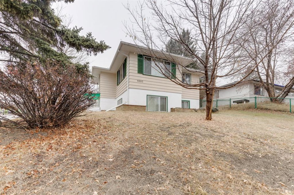 Investor/Developer ALERT! The huge R-C 2 60×120 CORNER lot is priced to sell. This home includes an illegal suite with a separate private entrance perfect for a family member or an option for extra income. There are 2 bedrooms up, 2 bedrooms down and a spacious shared laundry room with storage. The South facing windows allow plenty of natural sunlight on the upper and lower levels. The West facing large yard includes an RV parking pad, double detached garage and storage sheds. The front retaining wall has recently been refurbished. A fantastic location in the mature neighborhood of Highwood. Easy access to downtown as the home is steps to the transit. Numerous amenities include: Confederation Park, tennis courts, several schools and restaurants, outdoor swimming pool and easy access to either downtown or YYC airport. Do not miss this outstanding opportunity!