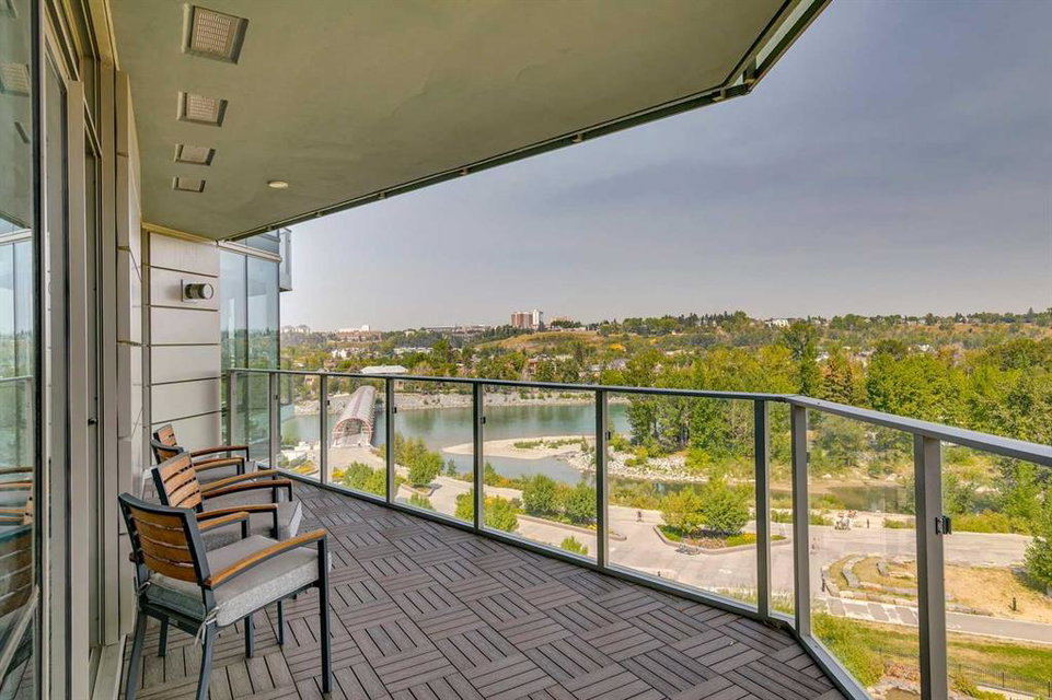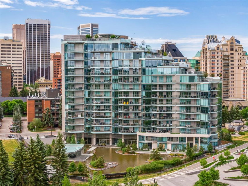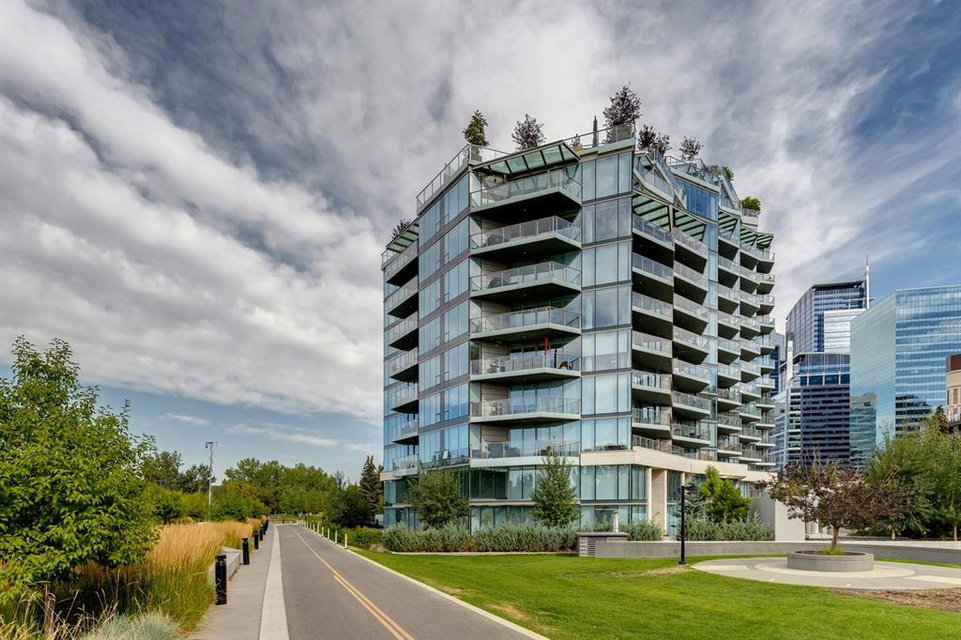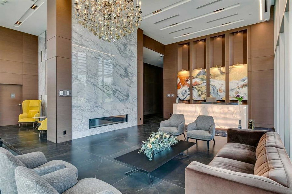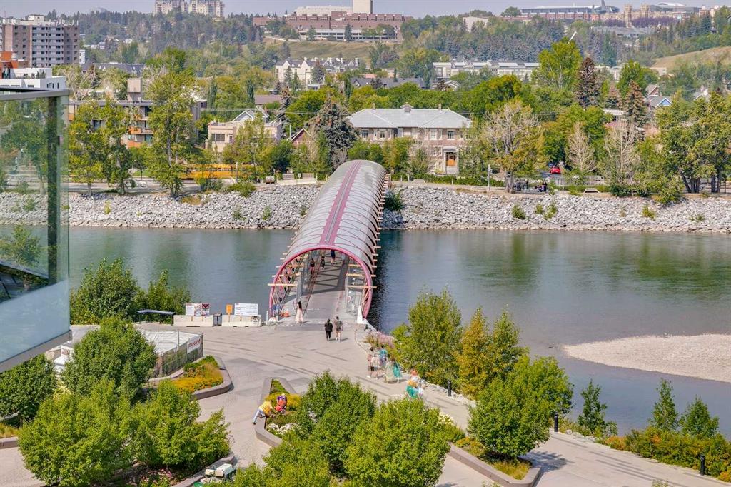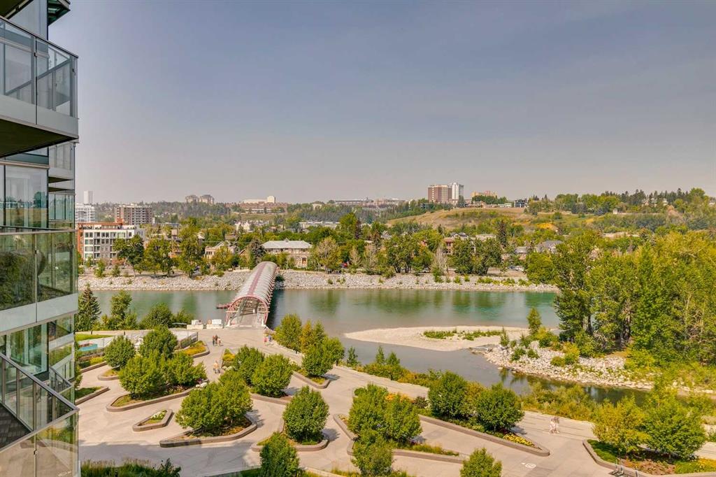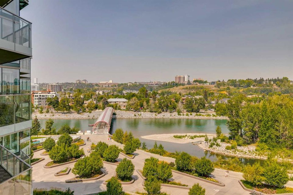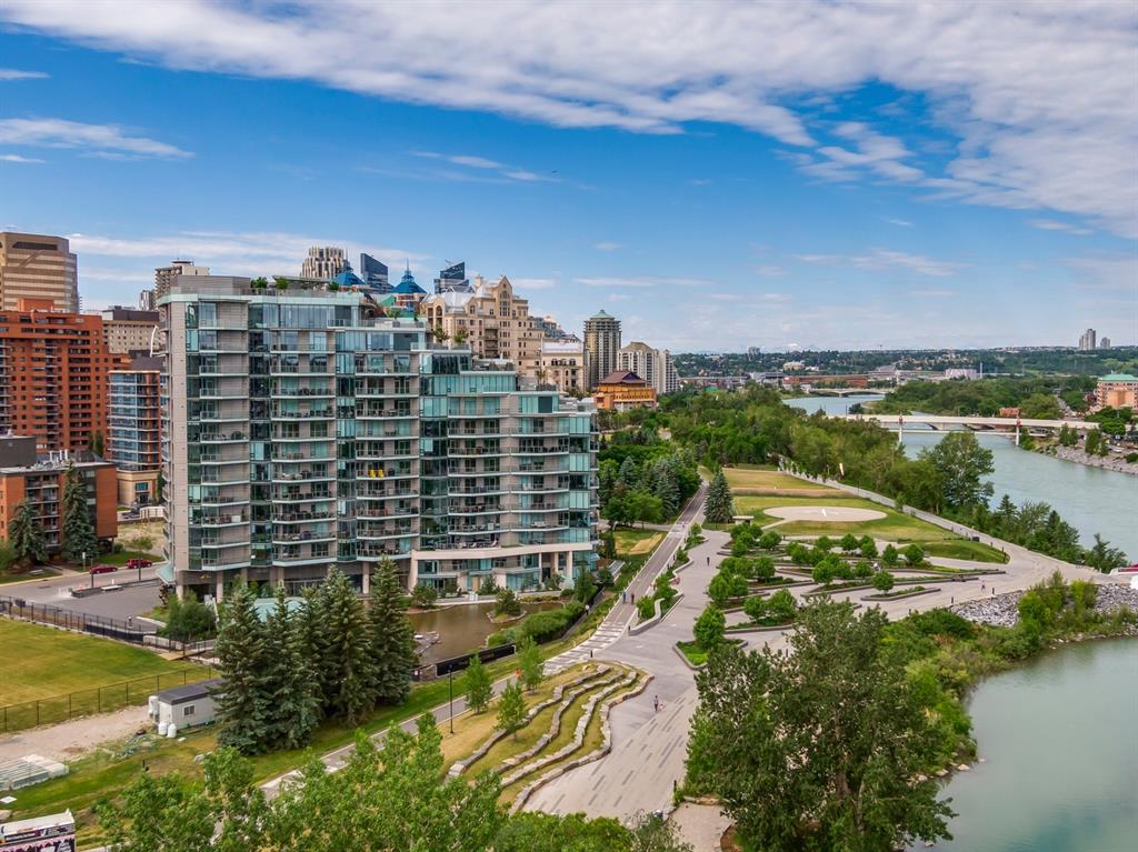 This residence offers an enticing proposition that melds elegance with functionality. Overlooking the captivating Bow River, the Concord’s timeless architecture continues to redefine luxury urban living in downtown Calgary. Ascending to the 8th floor, this unit unveils an intelligently designed open floor plan adorned with modern finishes. The culinary haven boasts quartz countertops, a gas cooktop, and a marble backsplash, complemented by an added Poggenpohl pantry cabinet for enhanced storage. Upgraded Hue pot lighting and a warm fireplace create an inviting ambiance in the living area. The master suite offers a walkthrough custom closet and an ensuite that epitomizes spa-like indulgence, complete with an oversized soaker tub. Immerse yourself in the opulence of marble flooring, accentuated by in-floor heating, in the bathrooms. The versatile second bedroom can effortlessly transform into an office to suit your lifestyle. Extend your living space to the capacious balcony, commanding views of the Bow River and Prince’s Island Park. Through floor-to-ceiling windows adorned with motorized Hunter Douglas blinds, Calgary’s breathtaking panoramas unfold in every room. The master bedroom and living area grant balcony access, complemented by a gas outlet for potential barbecuing. Park with peace of mind using the secured underground tandem parking for two vehicles, while two titled storage lockers offer extra convenience. Indulge in an array of amenities: a 24-hour Concierge, top-tier security, electric car charging provisions, and a cutting-edge car wash. The allure extends outdoors with a summer garden and an exclusive winter skating rink. Indoor entertainment options include an exquisite kitchen and lounge, adorned with two outdoor fire pits. Future amenities in the adjacent building encompass a pool and a state-of-the-art golf simulator. Designed with unwavering resilience, the Concord features an unparalleled flood prevention wall. Situated amidst nature yet seamlessly connected to downtown, relish easy access to both the mountains and the airport. Whether seeking a second home in Calgary or downsizing with plans of winter travel this may be your future dream home!