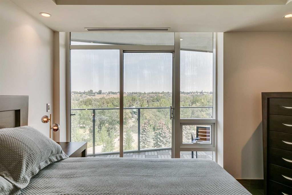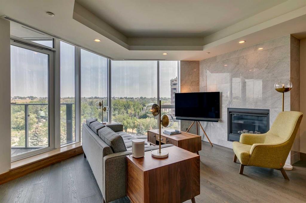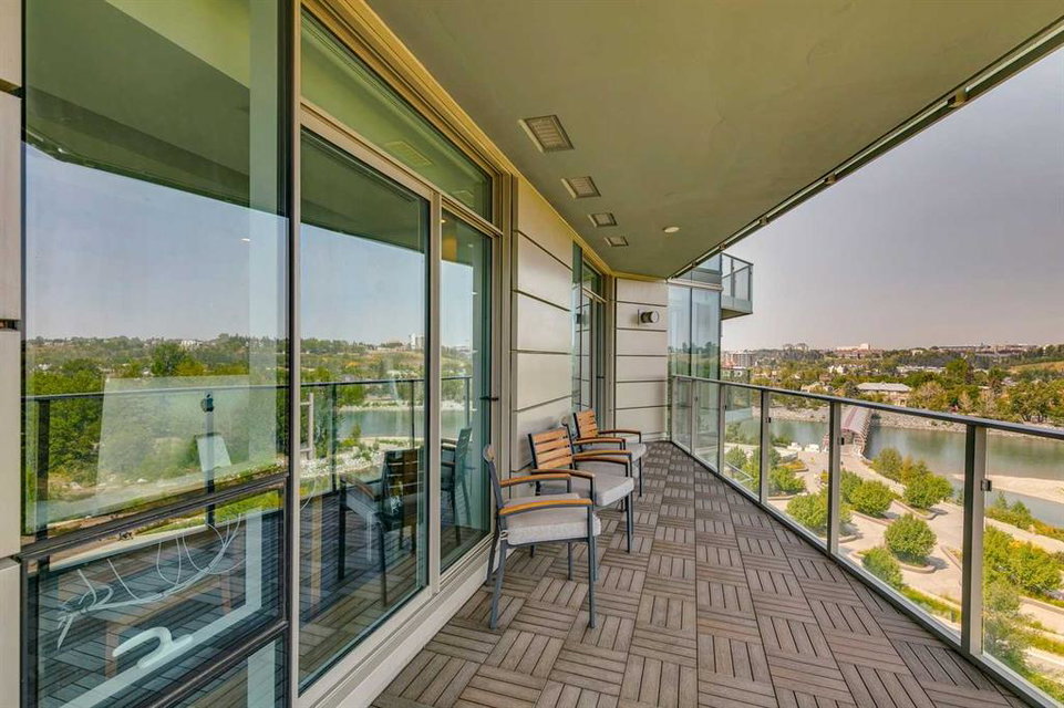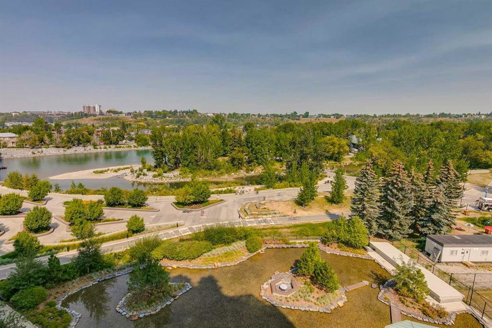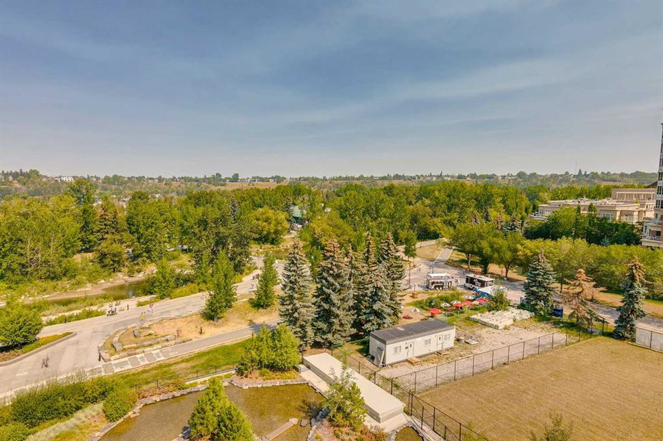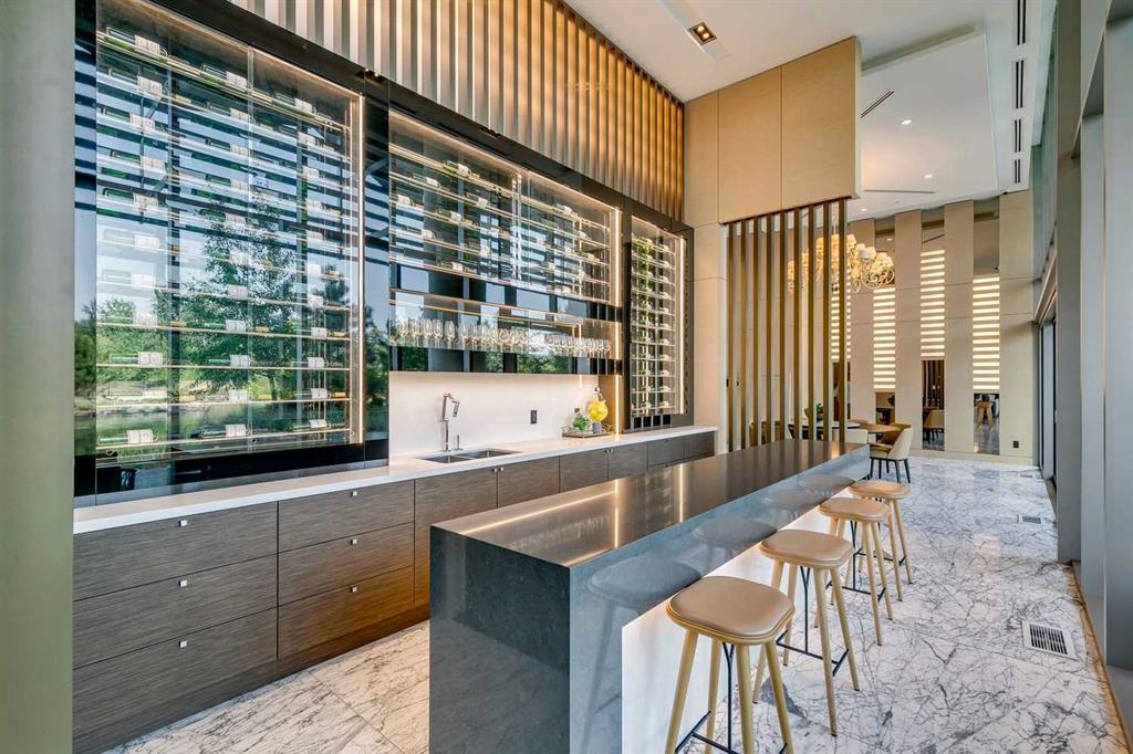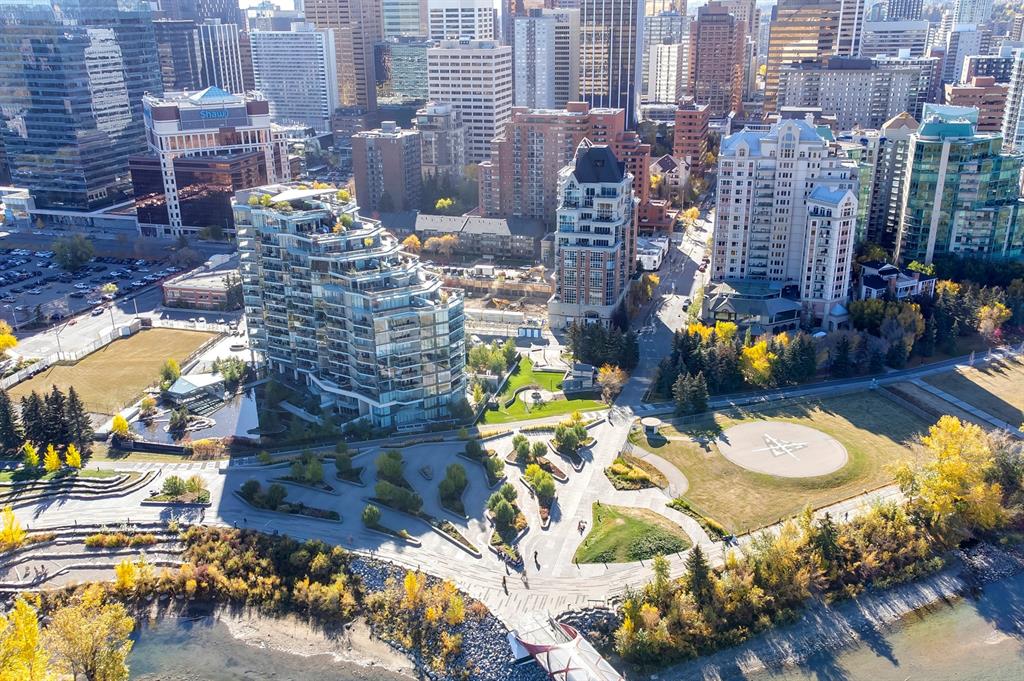 This residence offers an enticing proposition that melds elegance with functionality. Overlooking the captivating Bow River, the Concord’s timeless architecture continues to redefine luxury urban living in downtown Calgary. Ascending to the 8th floor, this unit unveils an intelligently designed open floor plan adorned with modern finishes. The culinary haven boasts quartz countertops, a gas cooktop, and a marble backsplash, complemented by an added Poggenpohl pantry cabinet for enhanced storage. Upgraded Hue pot lighting and a warm fireplace create an inviting ambiance in the living area. The master suite offers a walkthrough custom closet and an ensuite that epitomizes spa-like indulgence, complete with an oversized soaker tub. Immerse yourself in the opulence of marble flooring, accentuated by in-floor heating, in the bathrooms. The versatile second bedroom can effortlessly transform into an office to suit your lifestyle. Extend your living space to the capacious balcony, commanding views of the Bow River and Prince’s Island Park. Through floor-to-ceiling windows adorned with motorized Hunter Douglas blinds, Calgary’s breathtaking panoramas unfold in every room. The master bedroom and living area grant balcony access, complemented by a gas outlet for potential barbecuing. Park with peace of mind using the secured underground tandem parking for two vehicles, while two titled storage lockers offer extra convenience. Indulge in an array of amenities: a 24-hour Concierge, top-tier security, electric car charging provisions, and a cutting-edge car wash. The allure extends outdoors with a summer garden and an exclusive winter skating rink. Indoor entertainment options include an exquisite kitchen and lounge, adorned with two outdoor fire pits. Future amenities in the adjacent building encompass a pool and a state-of-the-art golf simulator. Designed with unwavering resilience, the Concord features an unparalleled flood prevention wall. Situated amidst nature yet seamlessly connected to downtown, relish easy access to both the mountains and the airport. Whether seeking a second home in Calgary or downsizing with plans of winter travel this may be your future dream home!