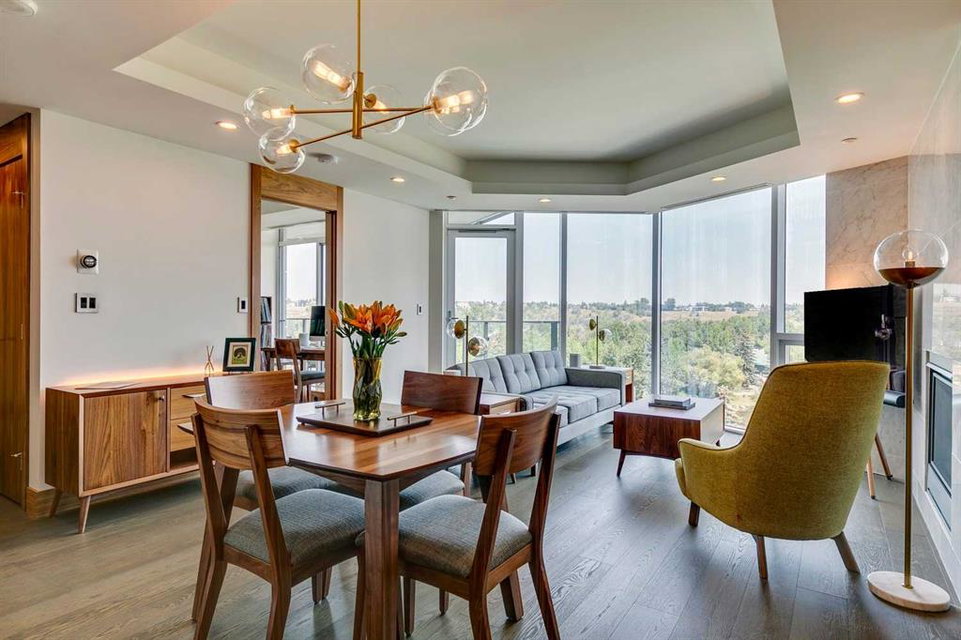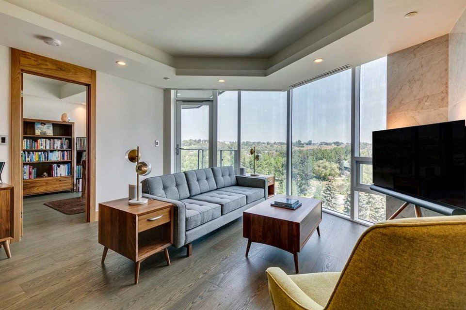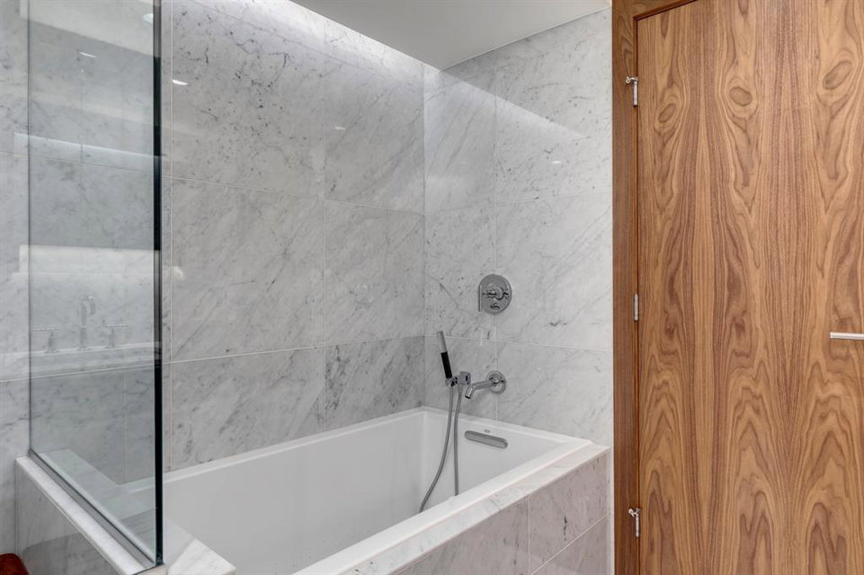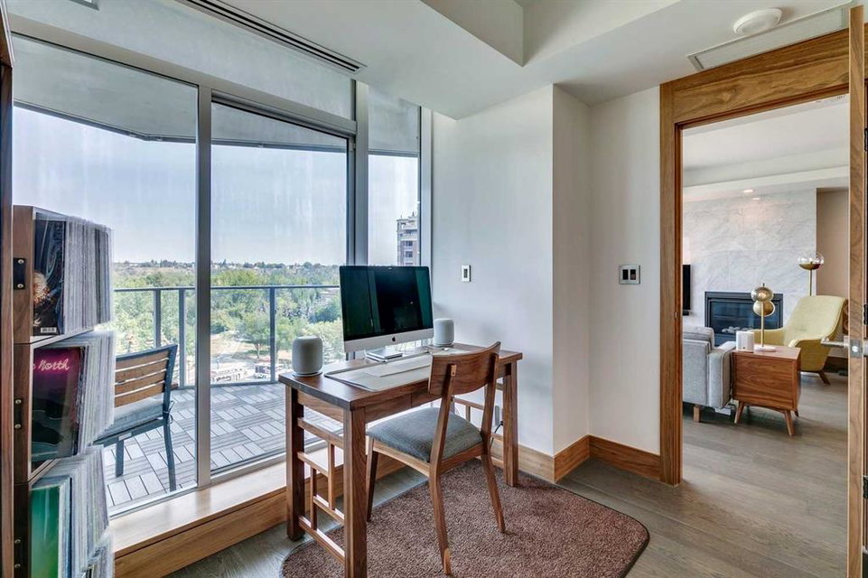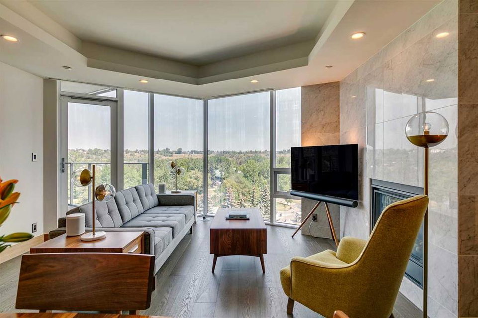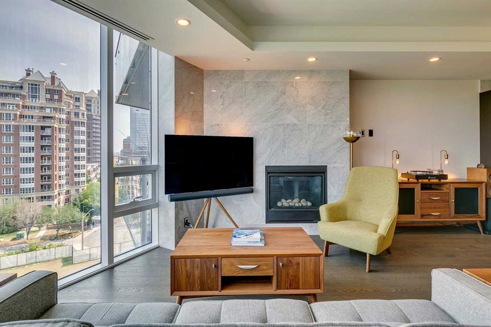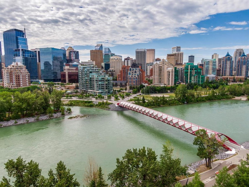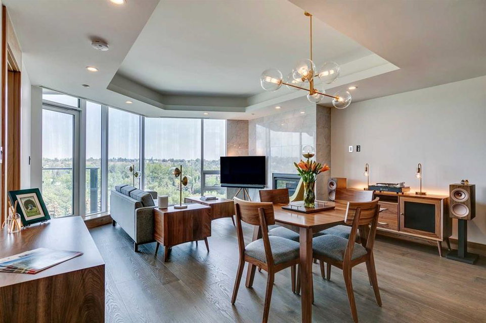 This residence offers an enticing proposition that melds elegance with functionality. Overlooking the captivating Bow River, the Concord’s timeless architecture continues to redefine luxury urban living in downtown Calgary. Ascending to the 8th floor, this unit unveils an intelligently designed open floor plan adorned with modern finishes. The culinary haven boasts quartz countertops, a gas cooktop, and a marble backsplash, complemented by an added Poggenpohl pantry cabinet for enhanced storage. Upgraded Hue pot lighting and a warm fireplace create an inviting ambiance in the living area. The master suite offers a walkthrough custom closet and an ensuite that epitomizes spa-like indulgence, complete with an oversized soaker tub. Immerse yourself in the opulence of marble flooring, accentuated by in-floor heating, in the bathrooms. The versatile second bedroom can effortlessly transform into an office to suit your lifestyle. Extend your living space to the capacious balcony, commanding views of the Bow River and Prince’s Island Park. Through floor-to-ceiling windows adorned with motorized Hunter Douglas blinds, Calgary’s breathtaking panoramas unfold in every room. The master bedroom and living area grant balcony access, complemented by a gas outlet for potential barbecuing. Park with peace of mind using the secured underground tandem parking for two vehicles, while two titled storage lockers offer extra convenience. Indulge in an array of amenities: a 24-hour Concierge, top-tier security, electric car charging provisions, and a cutting-edge car wash. The allure extends outdoors with a summer garden and an exclusive winter skating rink. Indoor entertainment options include an exquisite kitchen and lounge, adorned with two outdoor fire pits. Future amenities in the adjacent building encompass a pool and a state-of-the-art golf simulator. Designed with unwavering resilience, the Concord features an unparalleled flood prevention wall. Situated amidst nature yet seamlessly connected to downtown, relish easy access to both the mountains and the airport. Whether seeking a second home in Calgary or downsizing with plans of winter travel this may be your future dream home!