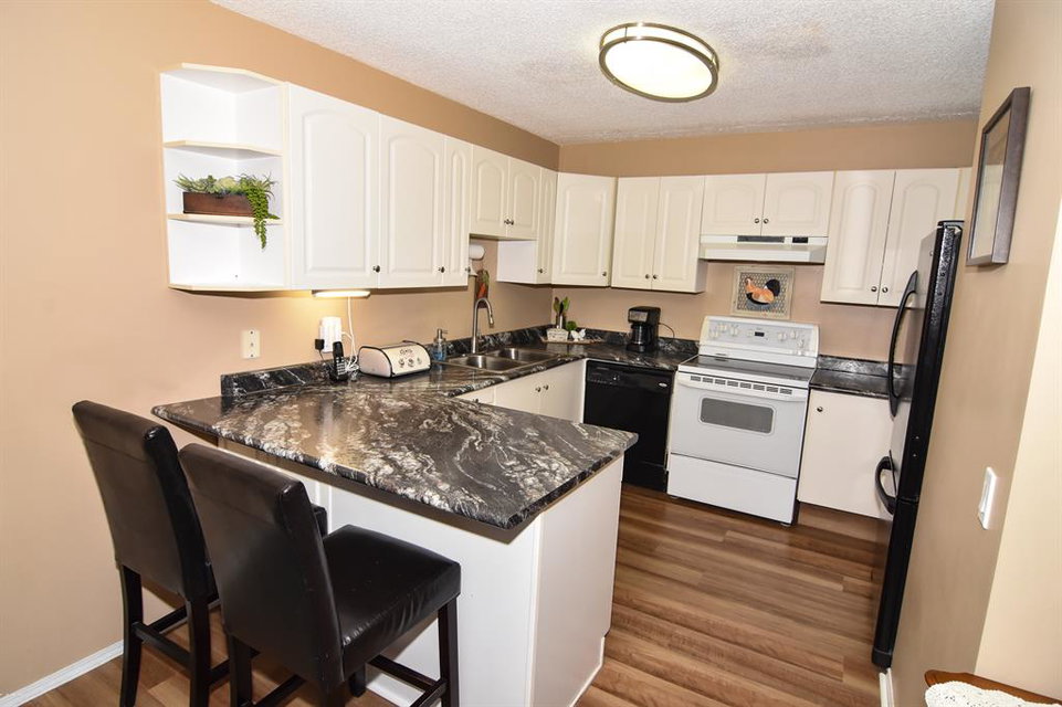 This spacious 2 bedroom townhome is located in the desirable quiet neighborhood of Glenbrook. It is perfect for first time buyers, investors or for anyone downsizing. A well thought out open concept floor plan with an abundance of storage. Enjoy your coffee on you sunny balcony in the morning. Updates include: newer windows and doors, vinyl plank flooring, white kitchen cabinets, countertops and breakfast bar, bathroom vanity, toilet, light fixture and easy to care for bath enclosure. No problem with parking- one Convenient assigned parking stall with extra stalls available for rent.Your guests will appreciate the ample visitor parking. An exceptionally well-run professionally managed complex with low condo fees of only $327 and a healthy reserve fund (bring your pets- allowed up to 50 pounds with board approval). A fantastic location with ample greenspace in close proximity to 3 major grocery stores-5 minute drive, Westhills shopping district, restaurants, schools, off leash dog parks ,to name a few of the endless amenities. Easy access to transit, LRT, major travel routes and just 10 minutes to the city center! An excellent affordable townhome for your new home. Do not miss this outstanding opportunity!